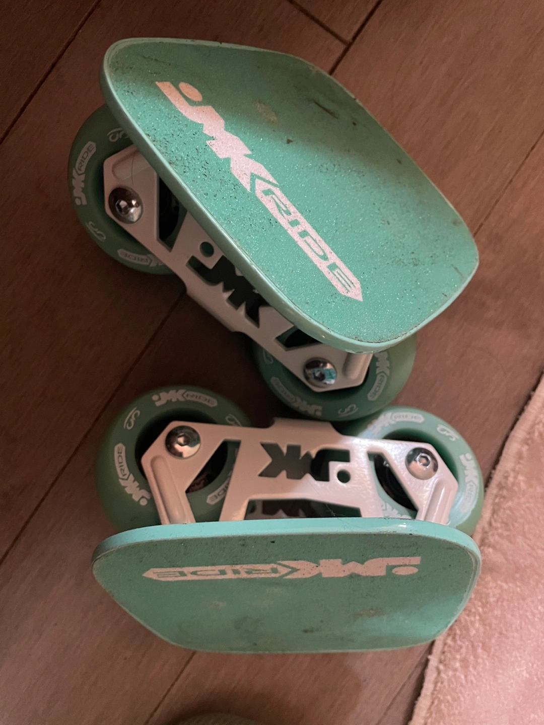 Pair of used JMK Ride skateboards. Mint green colour. Wheels included. Some wear. Pick up and cash only
