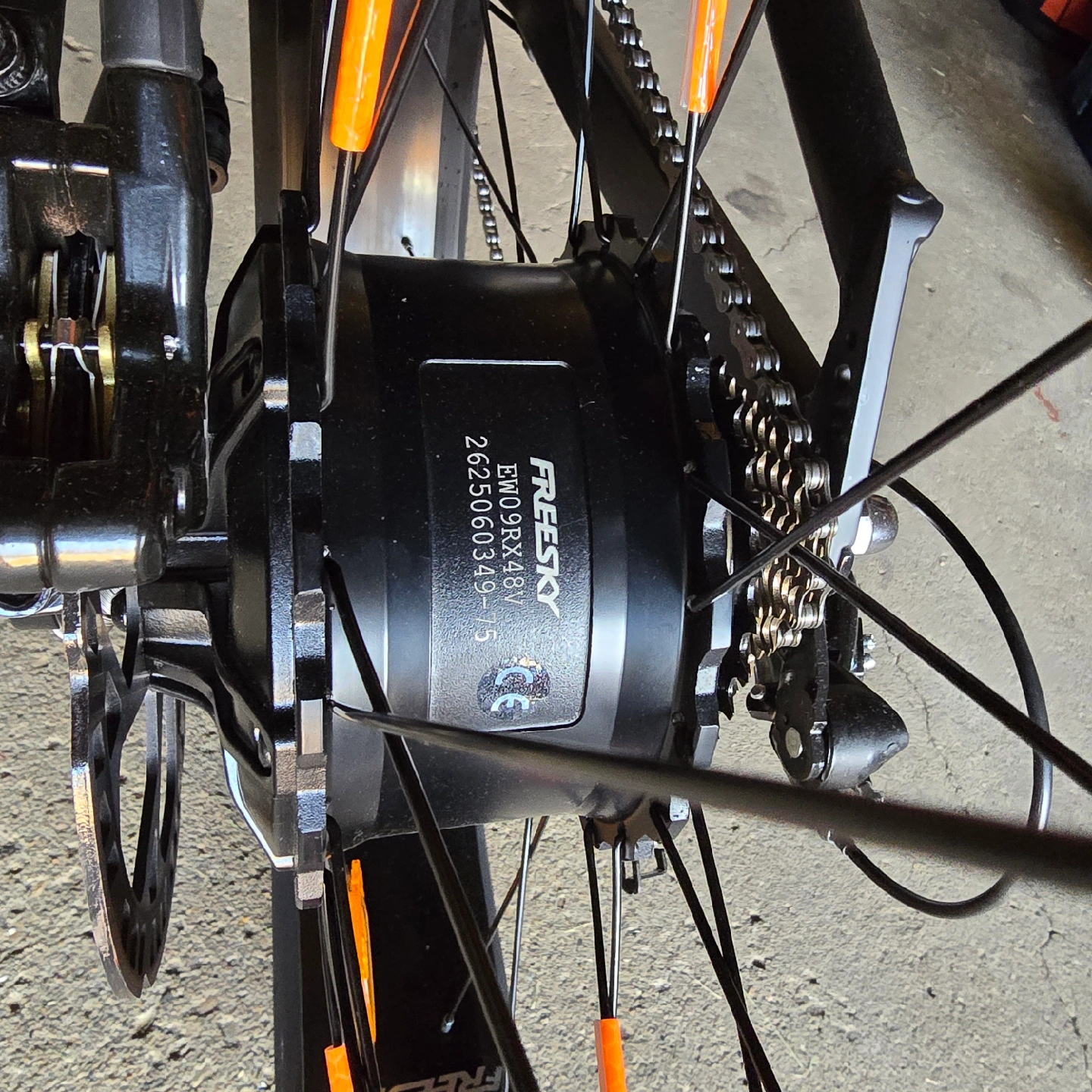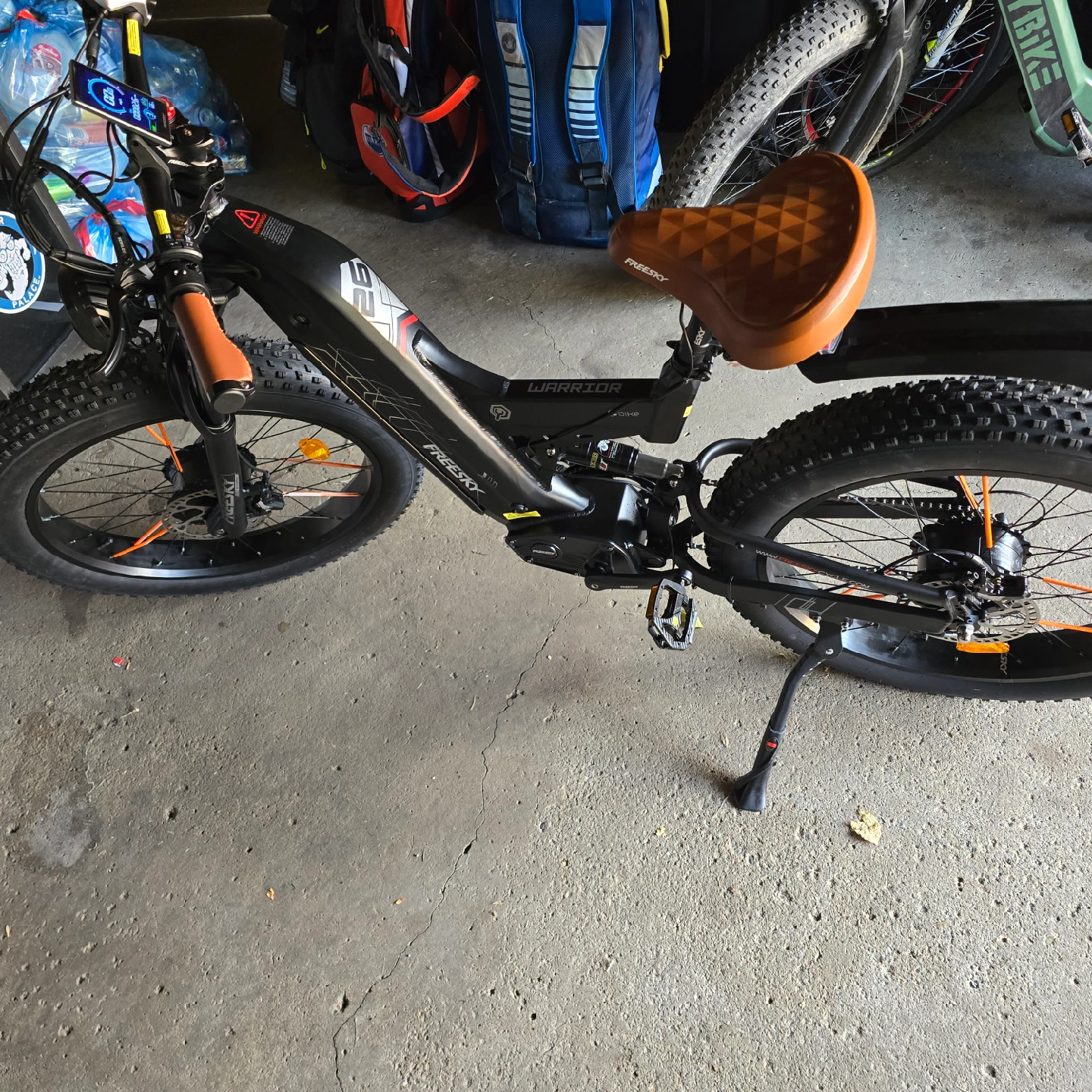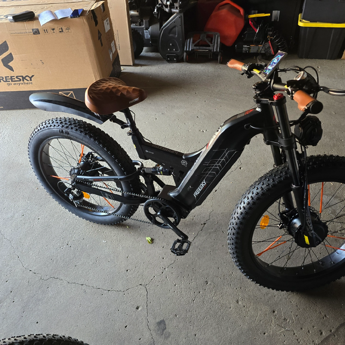 74Selling a FreeSky Warrior e-bike. It's in new condition used only a few times. bought for my son but its a bit too big for him. Definitely an adult bike .The bike has a unique design and is perfect for both city and off-road riding. If you're looking for a reliable and stylish e-bike this your next new ride. bike is 91 pounds has awd and roughly 200 nm torque. very strong for steep hills. all weather tires for any terrain. 30 ah battery roughly 150 km range depending obviously on output. color display nfc keys to start and removable battery. still have box and original packaging.