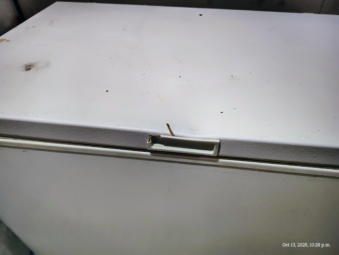 Selling a white chest freezer. It shows some signs of wear and tear. This is sold as-is, and you must remove it yourself from the basement furnace room.