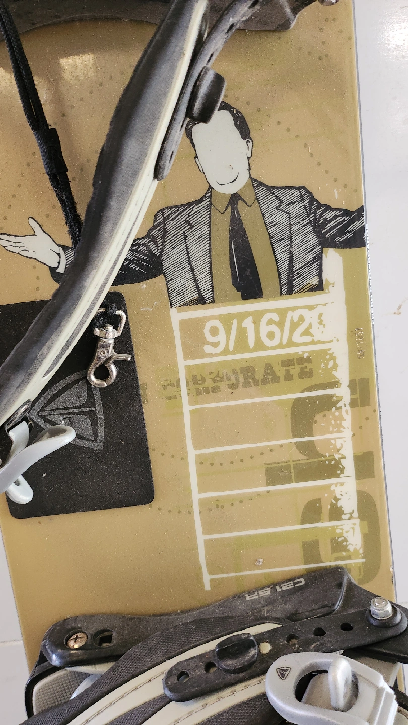 85Selling a used snowboard from Fresh Snowboards. It has some wear and tear but is still in good working condition for hitting the slopes. The snowboard features bindings and a unique graphic.