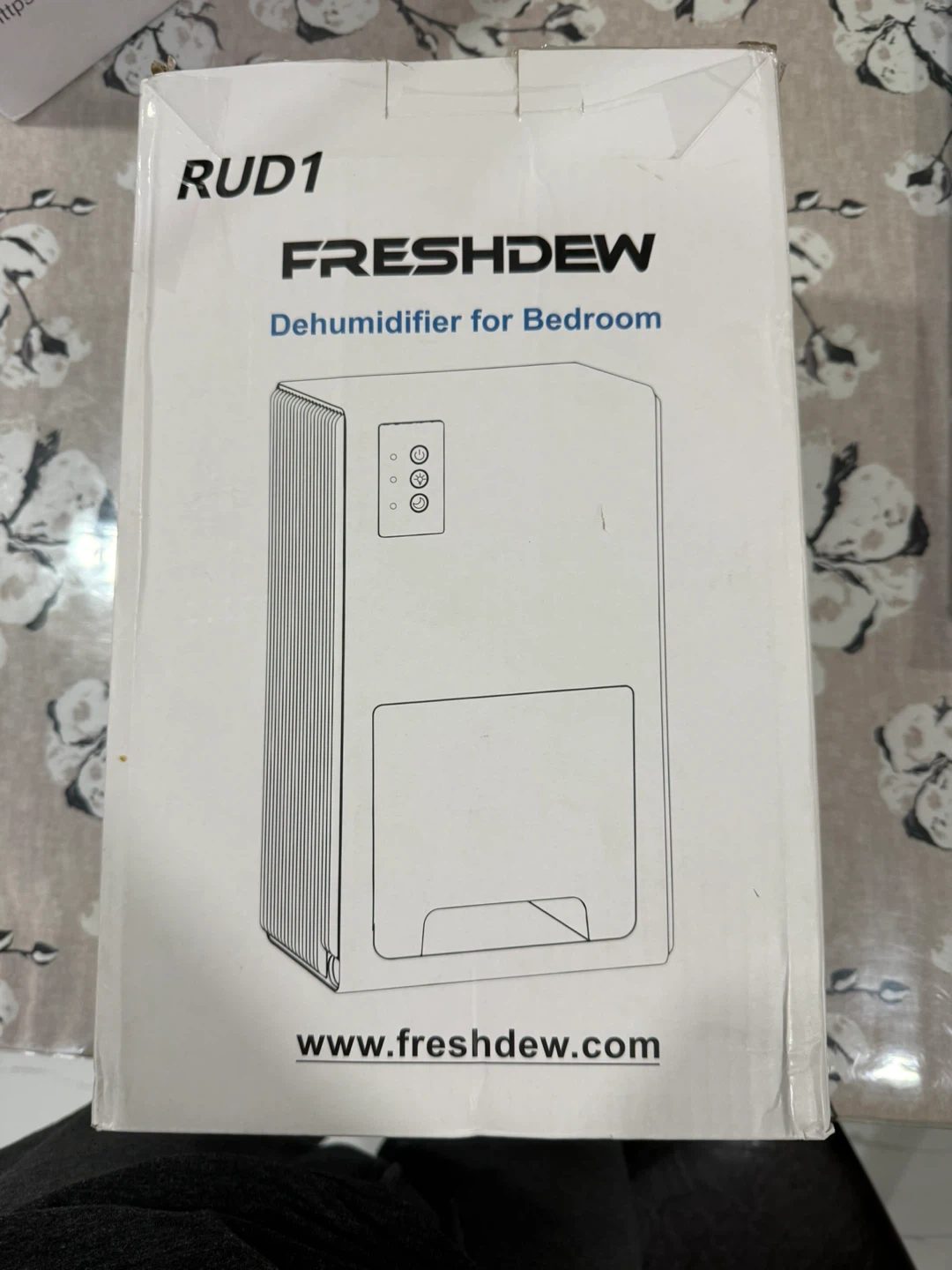 38Selling a brand new FRESHDEW RUD1 Dehumidifier for Bedroom! It's still in its original box and has never been used. Key features include: - Large water tank - Colorful LED light - Quiet and highly efficient operation - Sleeping mode with low noise - Auto-off when full of water - Efficient dehumidification It features a dual-core condenser and 7 colors LED light. The water tank capacity is 2500 ml. Rated power: Max 72 W. Voltage: 120-240 V. Product Dimensions: 210*350*140 mm