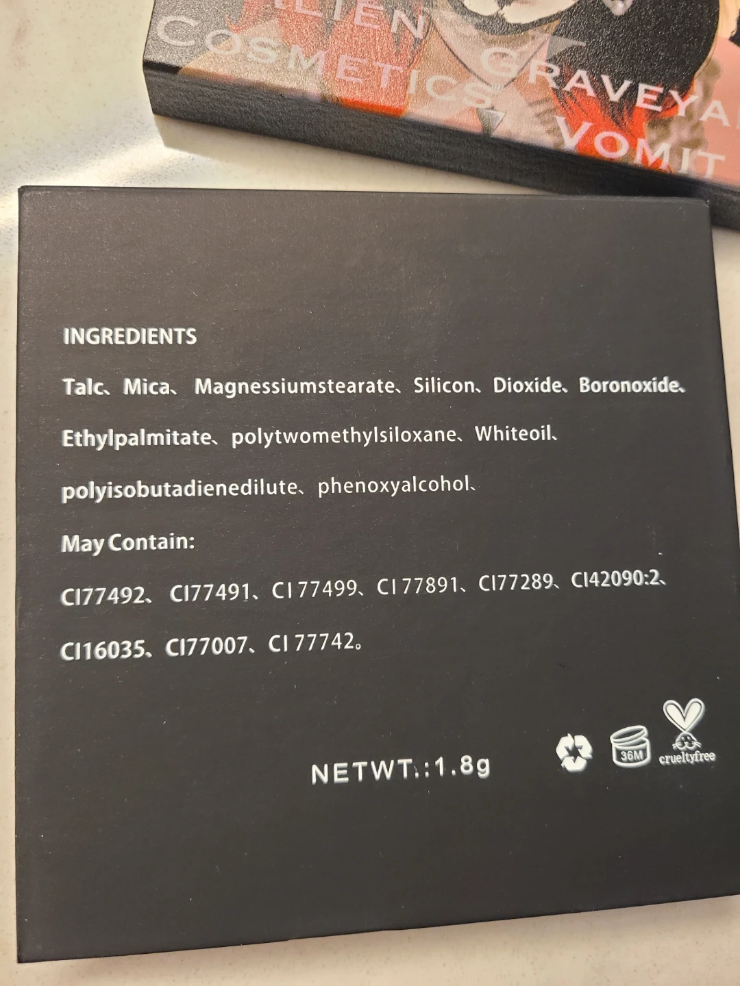 Alien Cosmetics Graveyard Vomit eyeshadow palette. Cruelty-free.