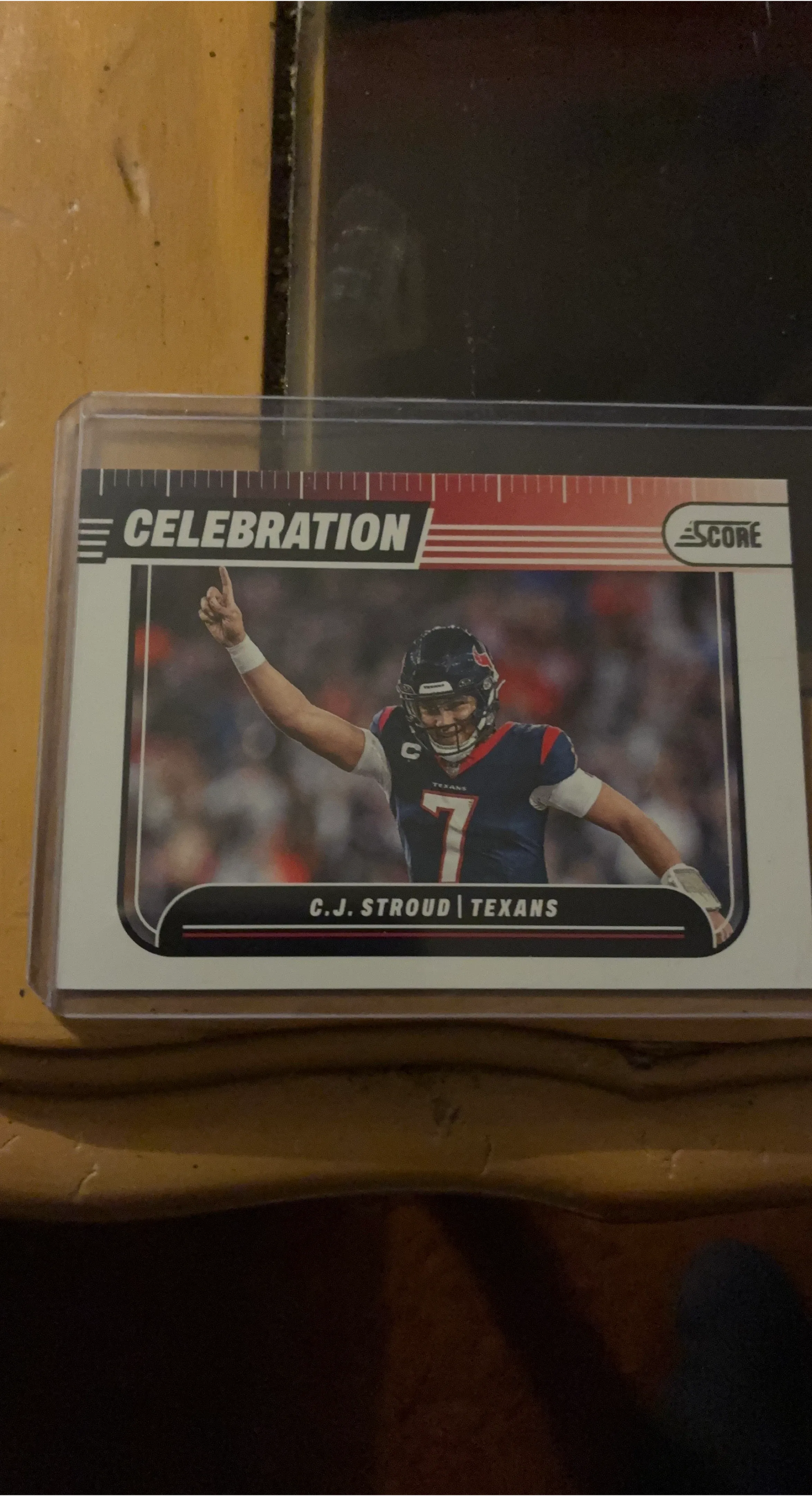 Score 2023 C.J. Stroud football card. This card is from the 'Celebration' set. It features C.J. Stroud of the Houston Texans.
