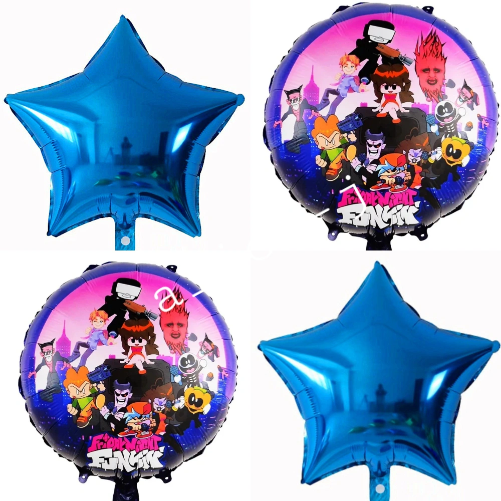 60Add some fun to your party with these Friday Night Funkin' balloons! You get a mix of star-shaped and round balloons, all in a bright Blue colour, Pink. Red or Gold. Great for decorating! 4pcs in a pack( 2 pcs of Round Friday Night Funkin and 2pcs Star foil balloons The size of each balloon is 18" please note: balloons comes flat in a pack