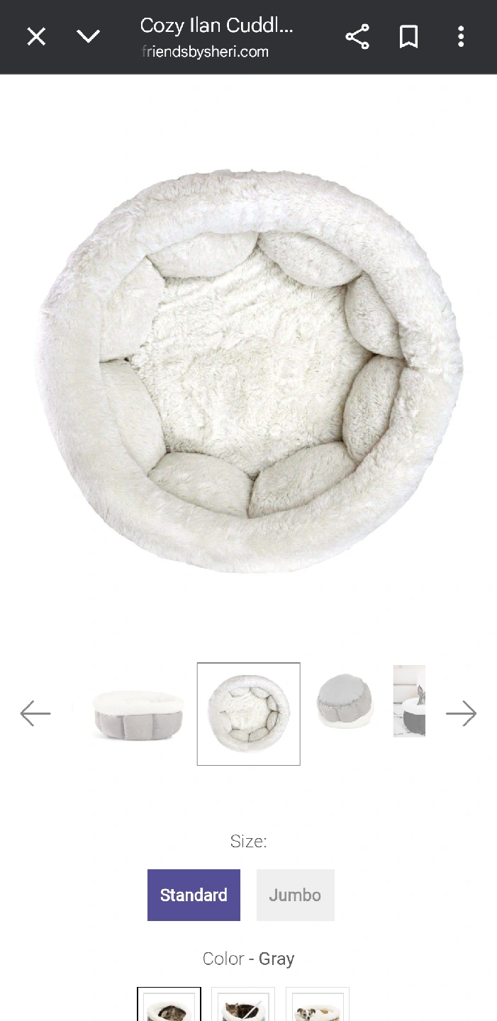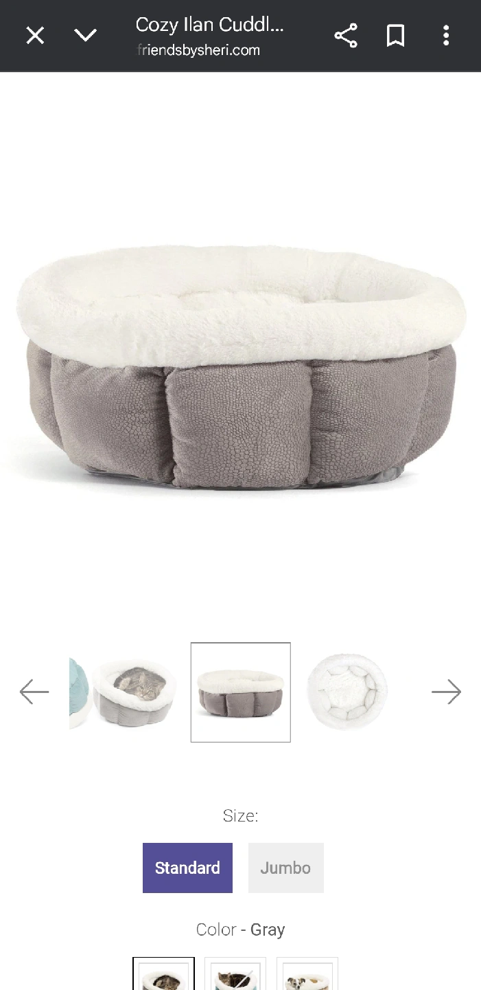 Selling a Friends by Sheri Cozy Cuddler bed in standard size and gray colour. It's in good condition with a few little bites on and around the tag but otherwise perfect for your furry friend to curl up in! I've only had it for a month and I'm looking to sell it cause my puppy got too big for it.