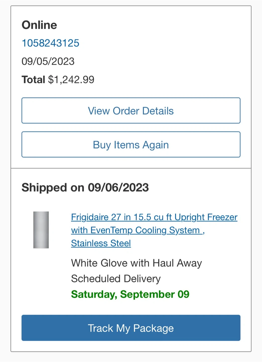 427Selling a Frigidaire 27 inch upright freezer in stainless steel. It has a 15.5 cu ft capacity and an EvenTemp Cooling System. Originally bought for $1,242.99