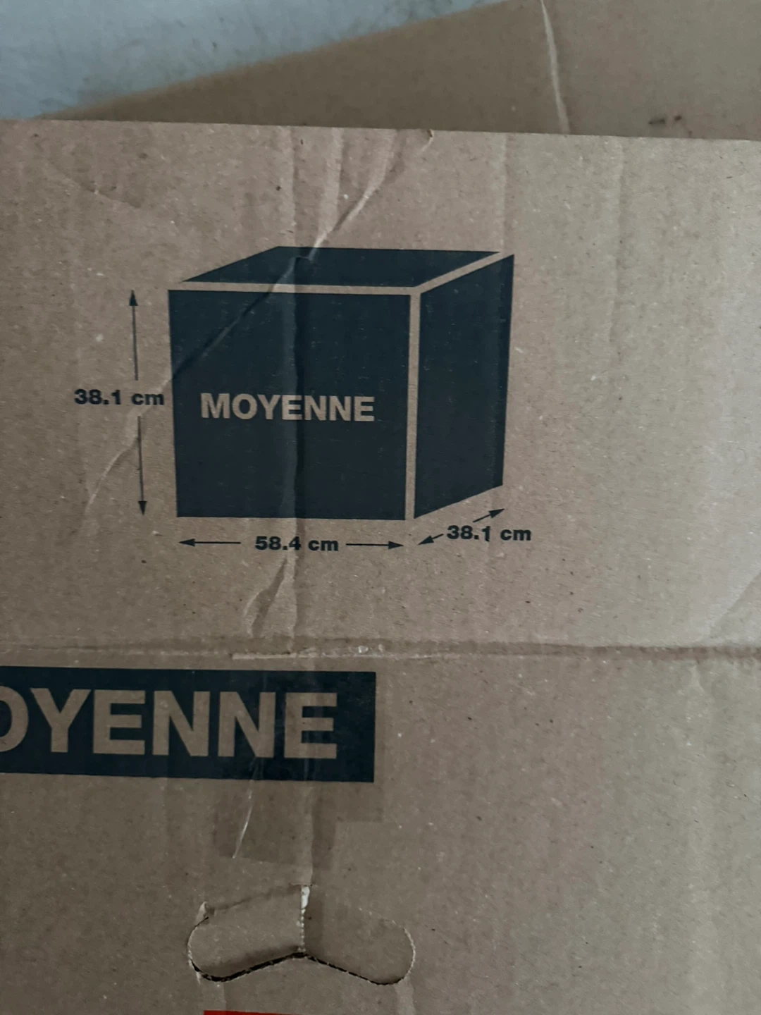 Home Depot medium moving boxes. Dimensions are 58.4 cm x 38.1 cm x 38.1 cm. These are sturdy cardboard boxes, perfect for packing. Great for moving or storage!