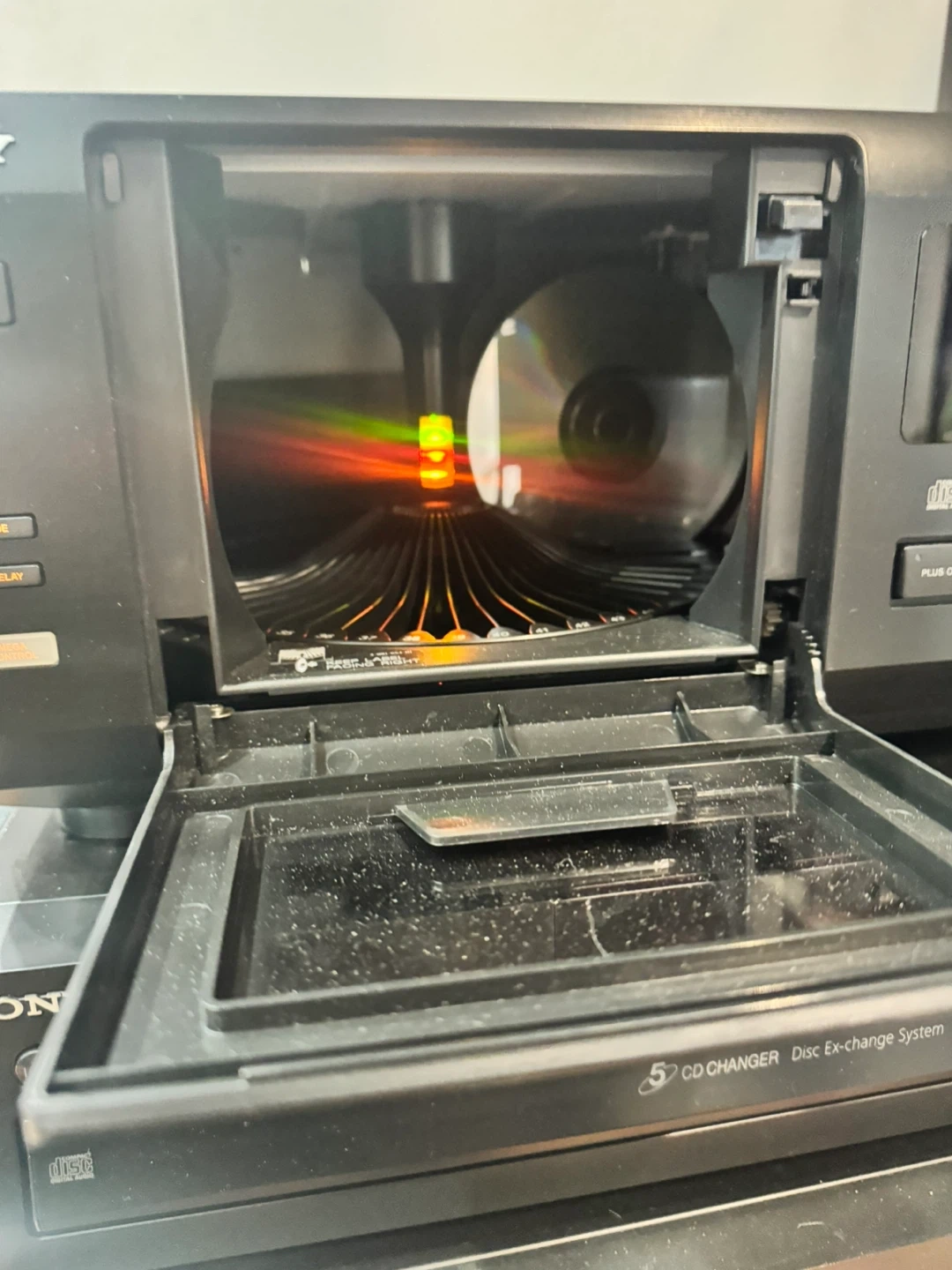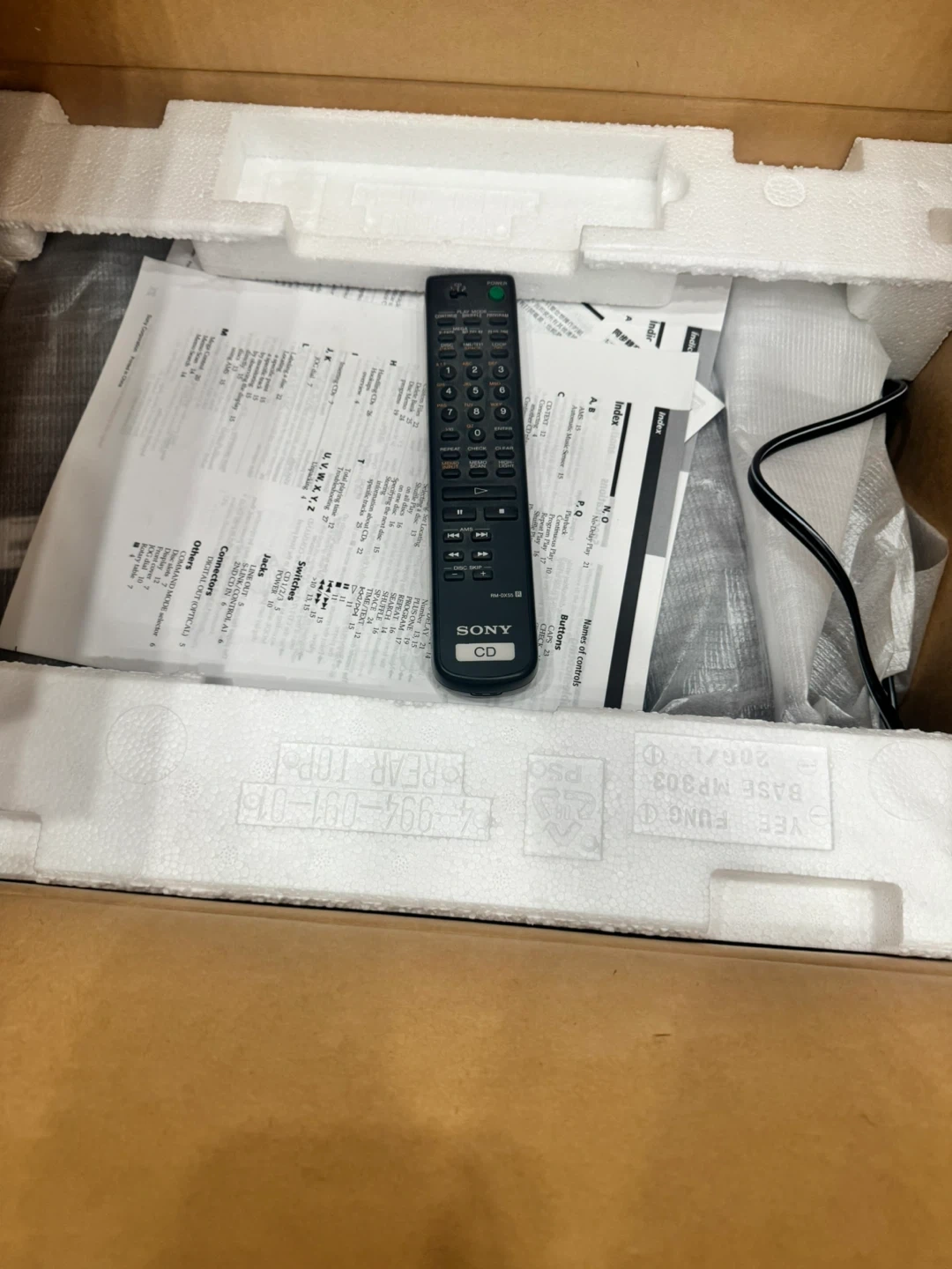 Sony 5-CD Changer Compact Disc Player, model CDP-CX55. Includes original box and remote. Features MegaStorage 50+1CD capability for extensive music collection playback. Perfect for audiophiles looking to manage their CD library.