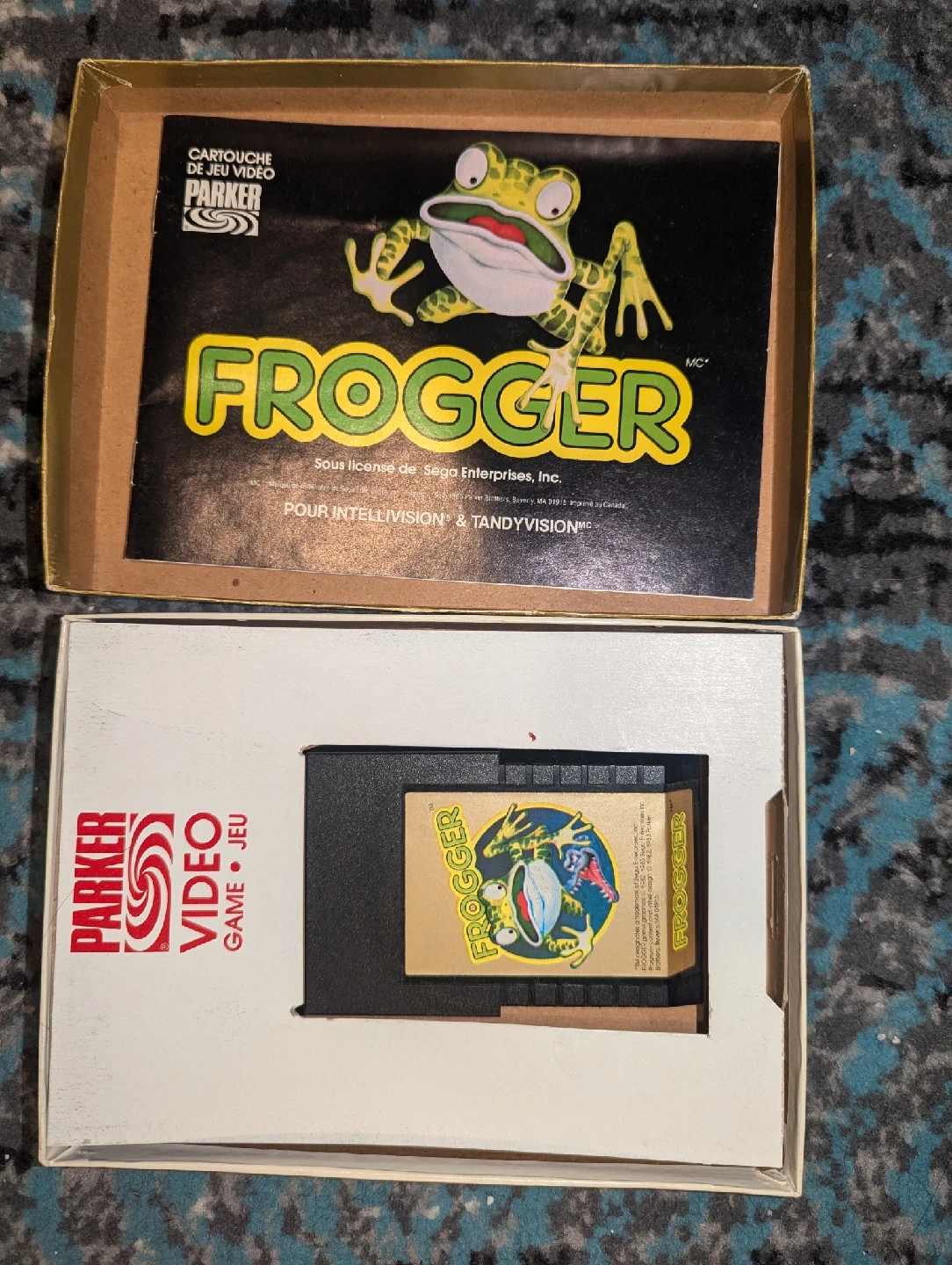 60Selling a vintage Frogger video game cartridge! It's for the Intellivision and Tandyvision systems. The box and cartridge are included