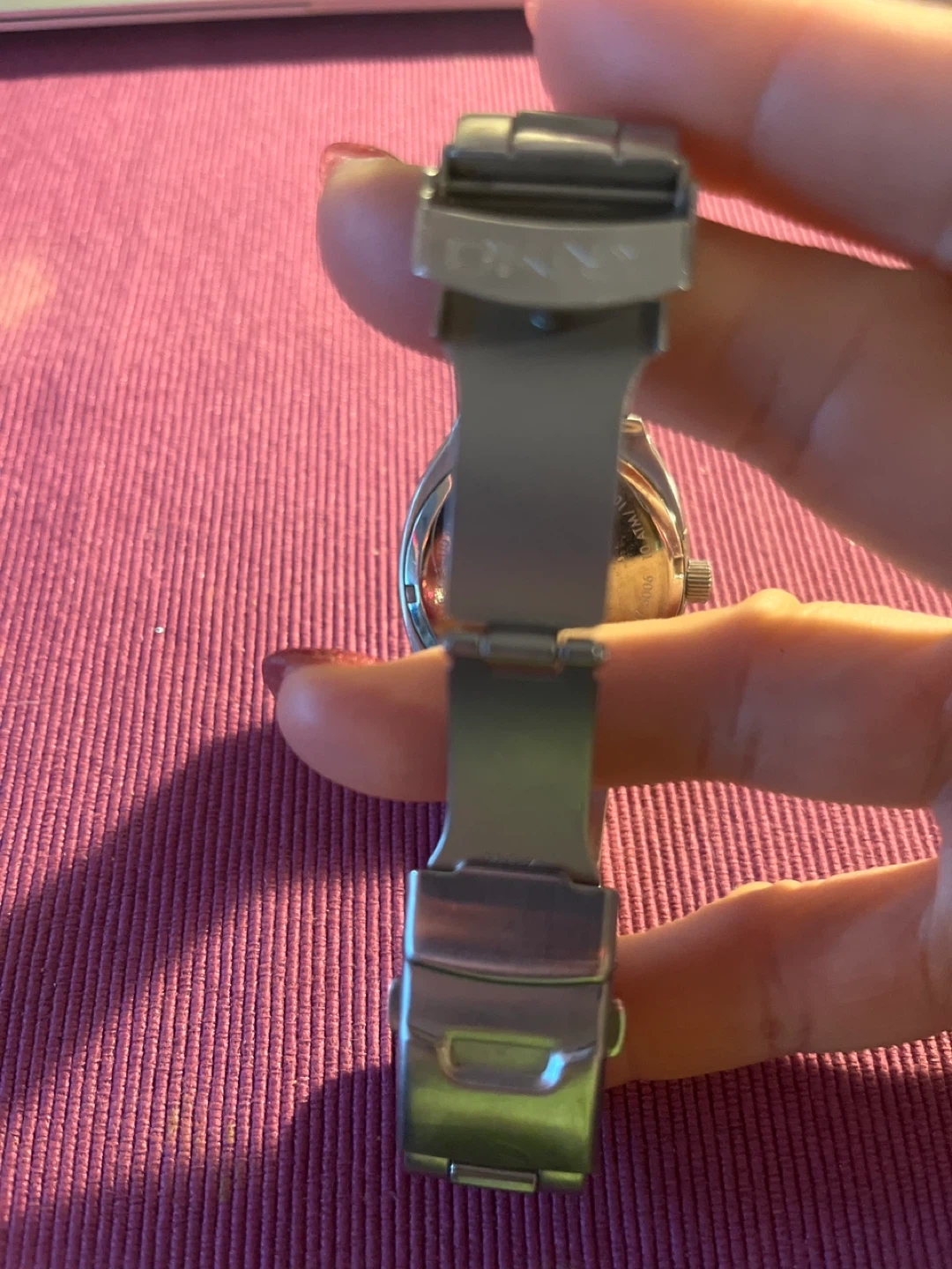 Selling a DKNY men's watch. The watch is stainless steel with a black face and silver band. It has some minor wear and tear, but is still in good condition and fully functional