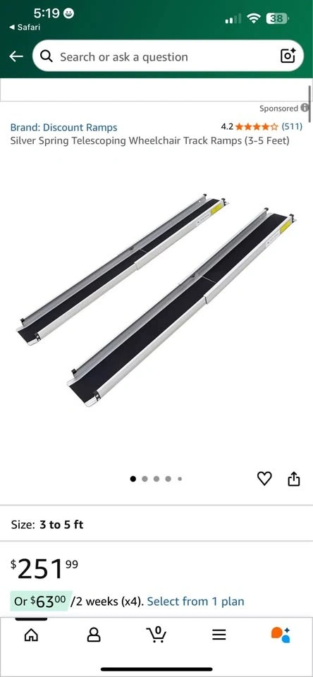 Silver Spring Single-Fold Wheelchair Ramp, 600 lb. Capacity 5 Fe