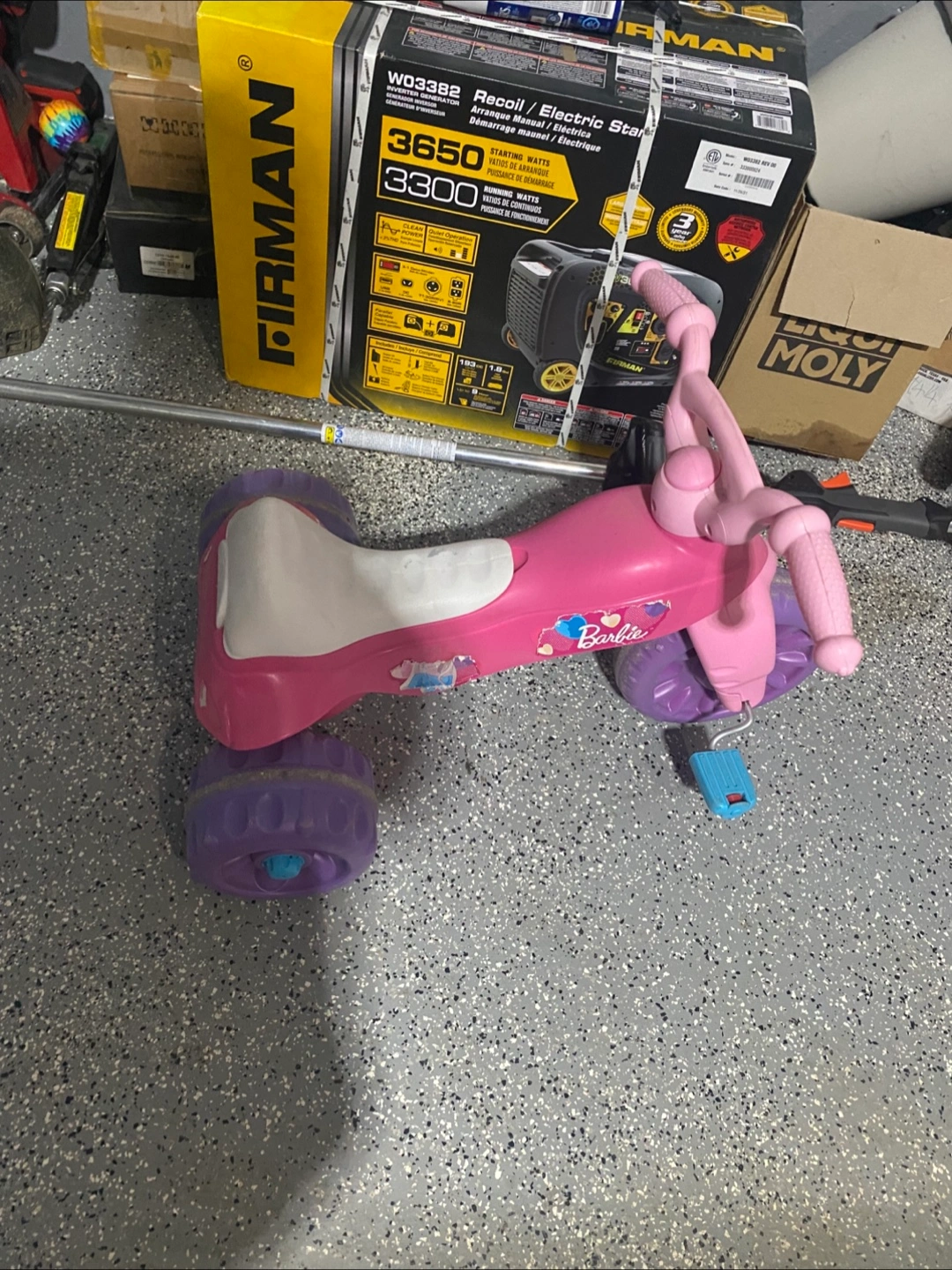 Selling a Frozen-themed bicycle and a Barbie trike for kids! Both are in good used condition and ready for a new home. Perfect for little ones learning to ride and explore. Both work and have no issues 10 for the pink bike and 20 for the frozen bike