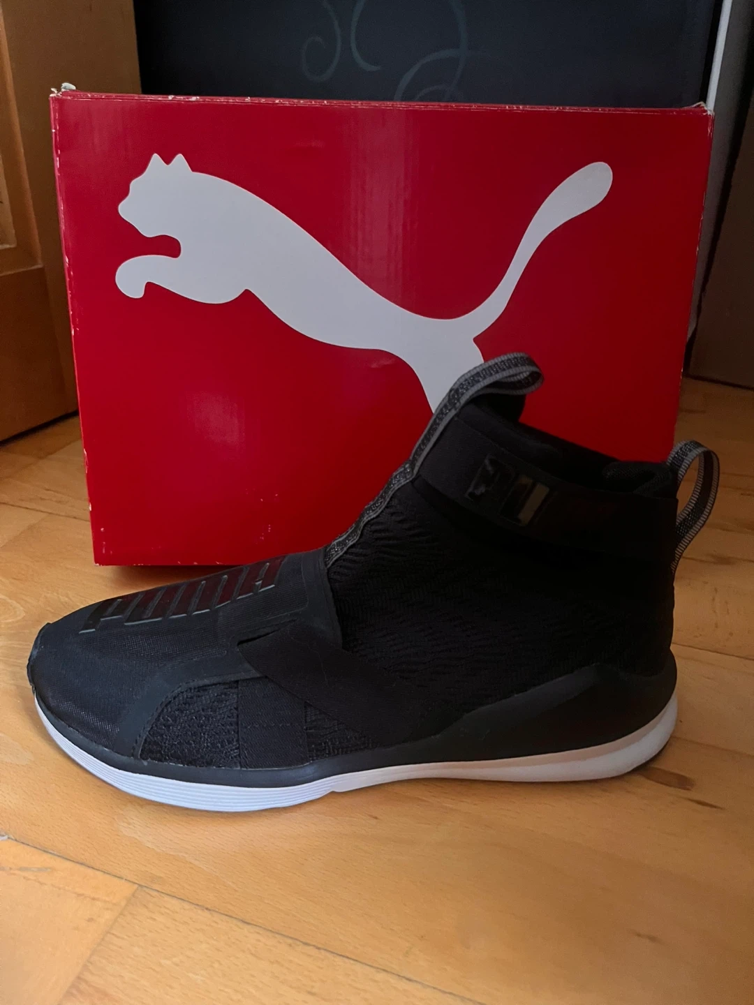 Puma womens training shoes, size 7 CDN. Includes original box with $140.00 price tag. Black colour.