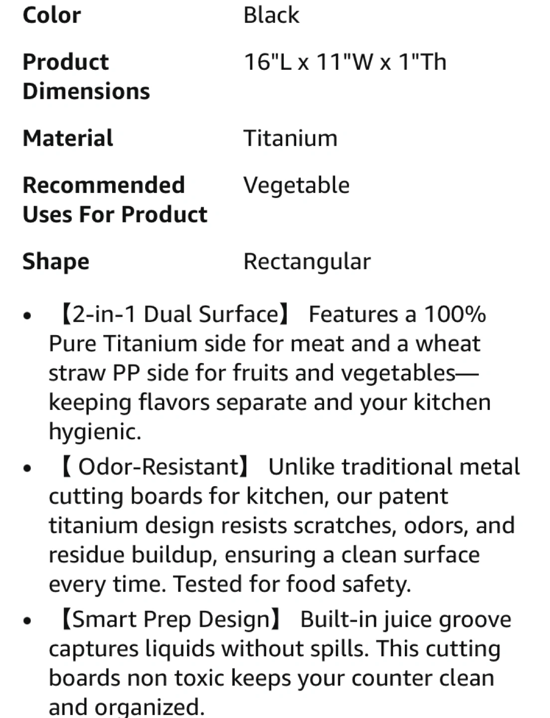 Buy & SellYC-10 Titanium Cutting Board - 16" x 11"YC-10 Titanium Cutting Board - 16" x 11"$20Titanium Cutting Board for Kitchen, Double-Sided Pure Titanium & Wheat Straw PP, Food Grade, Non Toxic, Easy to Clean, 16"×10.8" Chopping boardConditionNewWHERE TO MEETCheck LocationView MapSELLERverifiedfishElmhurst1356 reviews1 chats·1 favorites·15 viewsSEND CHAT TO SELLERHi fish! I’m interested in your listing.Hi fish! I’m interested in your listing.Get the Karrot app to chatSign In to chat