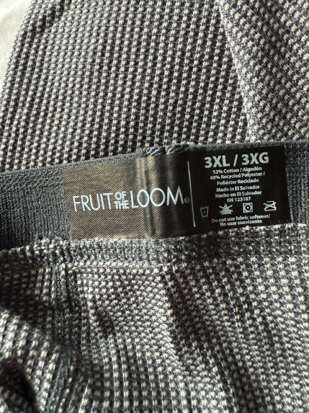 417Cozy Fruit of the Loom thermal set in size 3XL. The set is a grey colour and made from 52% cotton and 48% recycled polyester. Perfect for staying warm this winter!