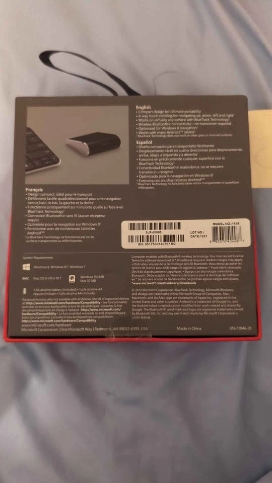 Condition: New (Open Box). Never used; the box was opened for inspection, but the mouse still has its original protective film. The Microsoft Wedge Touch Mouse is the ultimate travel companion for your laptop or tablet. It’s small enough to fit in your pocket and features full four-way touch scrolling for easy navigation. Key Features: Bluetooth Connectivity: No USB dongle required; connects directly to your Bluetooth-enabled laptop, tablet, or PC. 4-Way Touch Scrolling: Scroll vertically and horizontally using the sleek touch surface—perfect for navigating large spreadsheets or websites. BlueTrack Technology: Works on virtually any surface, including granite, wood, or even carpet. Backpack Mode: The mouse powers down automatically when your computer is shut down or hibernating to save battery. Ultra-Compact: Minimalist triangular design that fits easily into a bag or pocket. Included in Box: Microsoft Wedge Touch Mouse, One AA Battery (original/may need replacement), Documentation. Payment: Cash Only. Pickup Location: Near Markham Rd and Hwy 401.