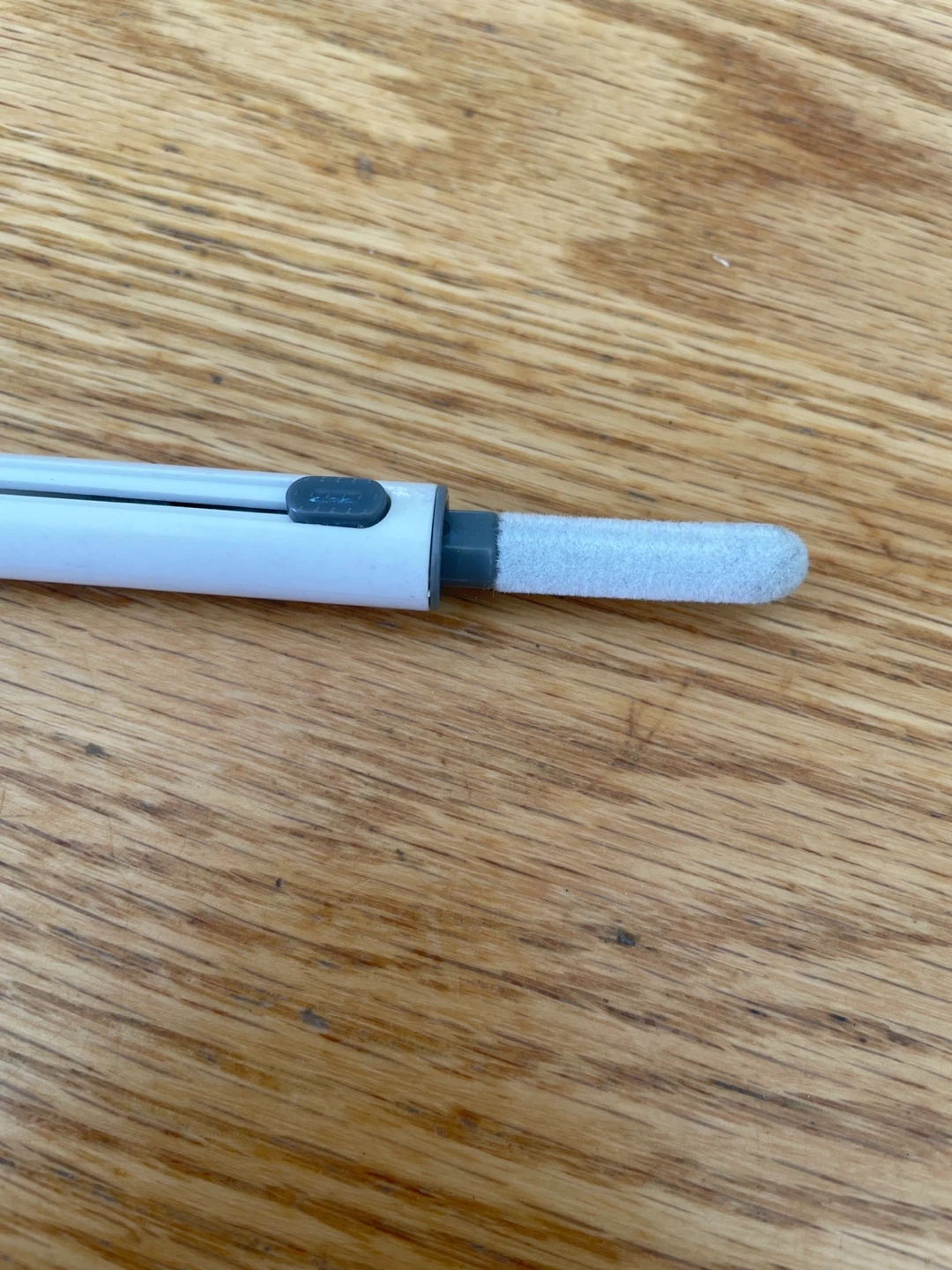 This handy cleaning pen is designed for electronics. It features a soft flocked sponge tip for cleaning screens and surfaces. It also has a small metal tip for getting into tight crevices and a brush for dusting. Great for cleaning earbuds, phones, and computer keyboards!