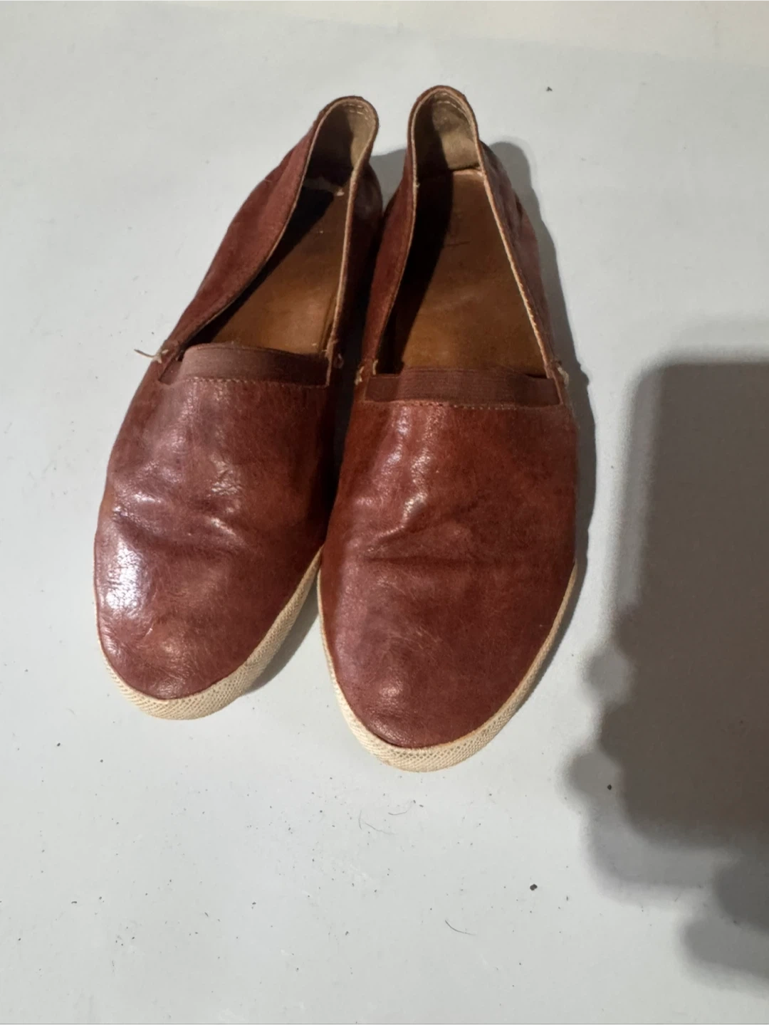 0Selling a pair of brown leather slip-on shoes! They are in good condition and ready for a new home. Perfect for casual wear or a relaxed day out