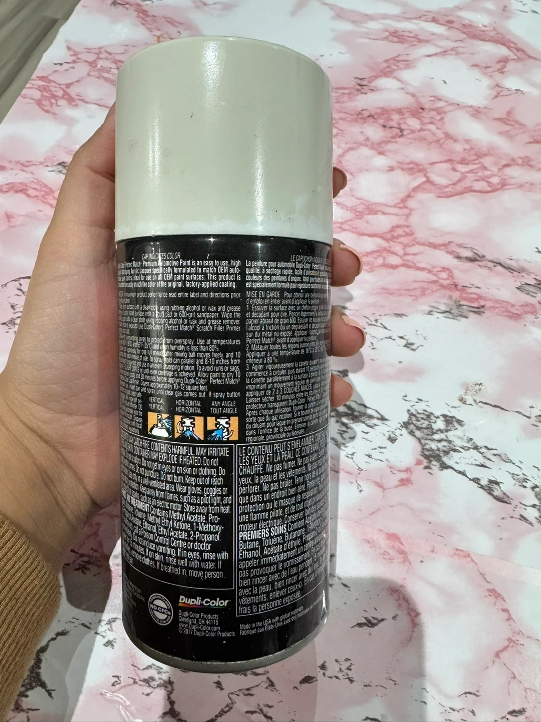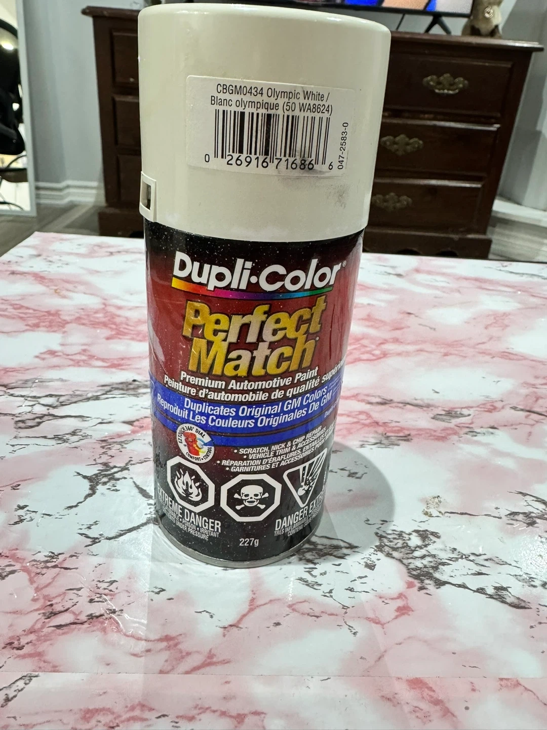 Dupli-Color Perfect Match Premium Automotive Paint in Olympic White. This aerosol can is designed for easy touch-ups and repairs on GM vehicles. It duplicates original GM colours and provides a durable finish. Used only less than half 2-3 sprays only!
