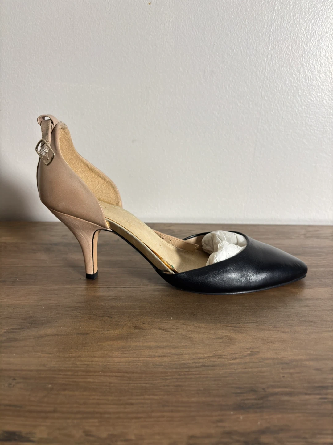 Elevate your look with these sleek two-tone ALDO heels, featuring a nude ankle strap and black pointed toe for a clean, modern silhouette. Details: • Brand: ALDO • Style: Two-tone pointed-toe heel (nude ankle strap + black toe) • Size: 9 US • Condition: Lightly worn indoors only – minor peeling on the toe area (shown in photos), otherwise excellent Price: $35. Cash or e-transfer on the spot is accepted. Pick up in NDG.