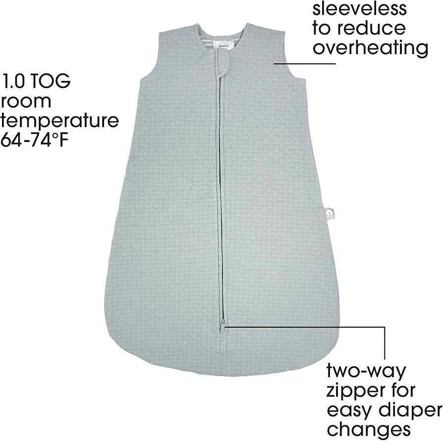 This is the 1.0 TOG version, perfect for year-round sleeping comfort in moderate room temperatures of 64-74F. Made from 100% soft cotton with a 2-way zipper for easy diaper changes.
