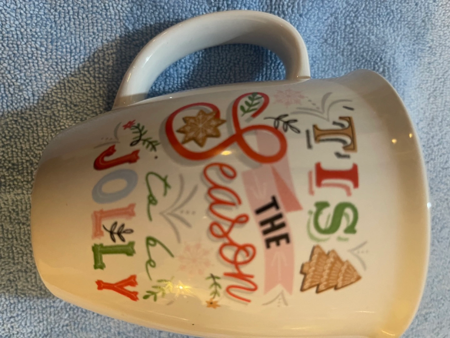 Large ceramic mug. Festive Christmas design. 'It's the Season to be Jolly' text.