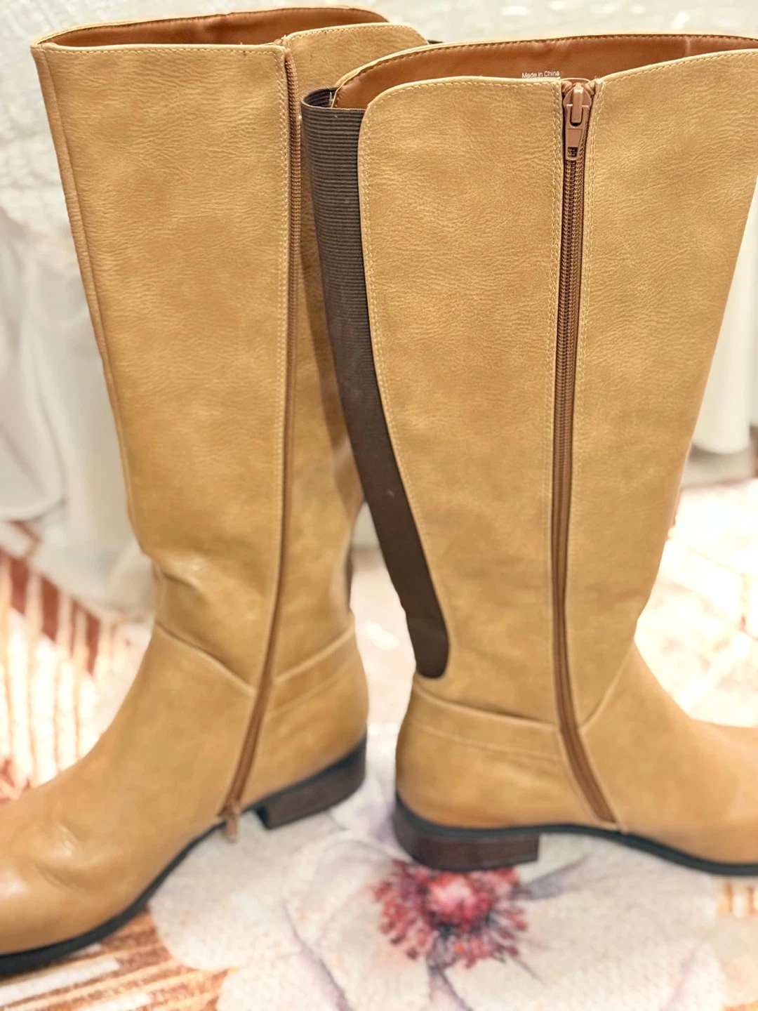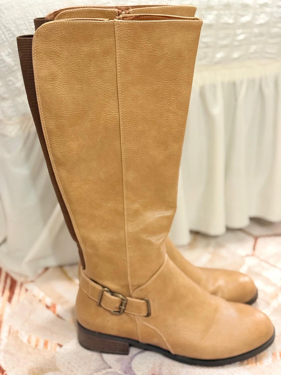 Call It Spring Women's Tan Vegan Knee-High Boots Size 10