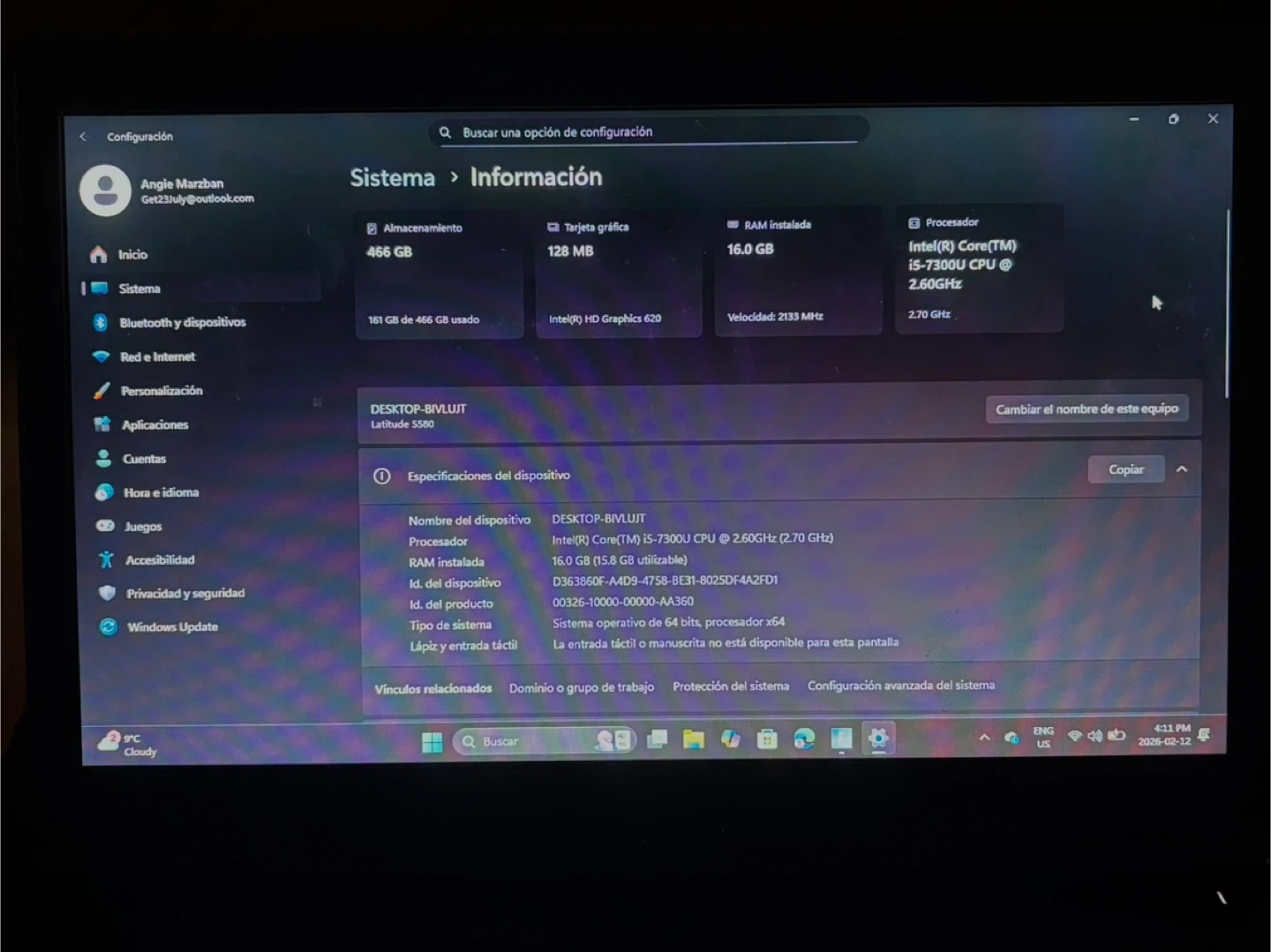 This is a Dell Latitude 5580 laptop with an Intel Core i5-7300U processor. It has 16 GB of RAM and a 466 GB hard drive. The graphics are Intel HD Graphics 620.