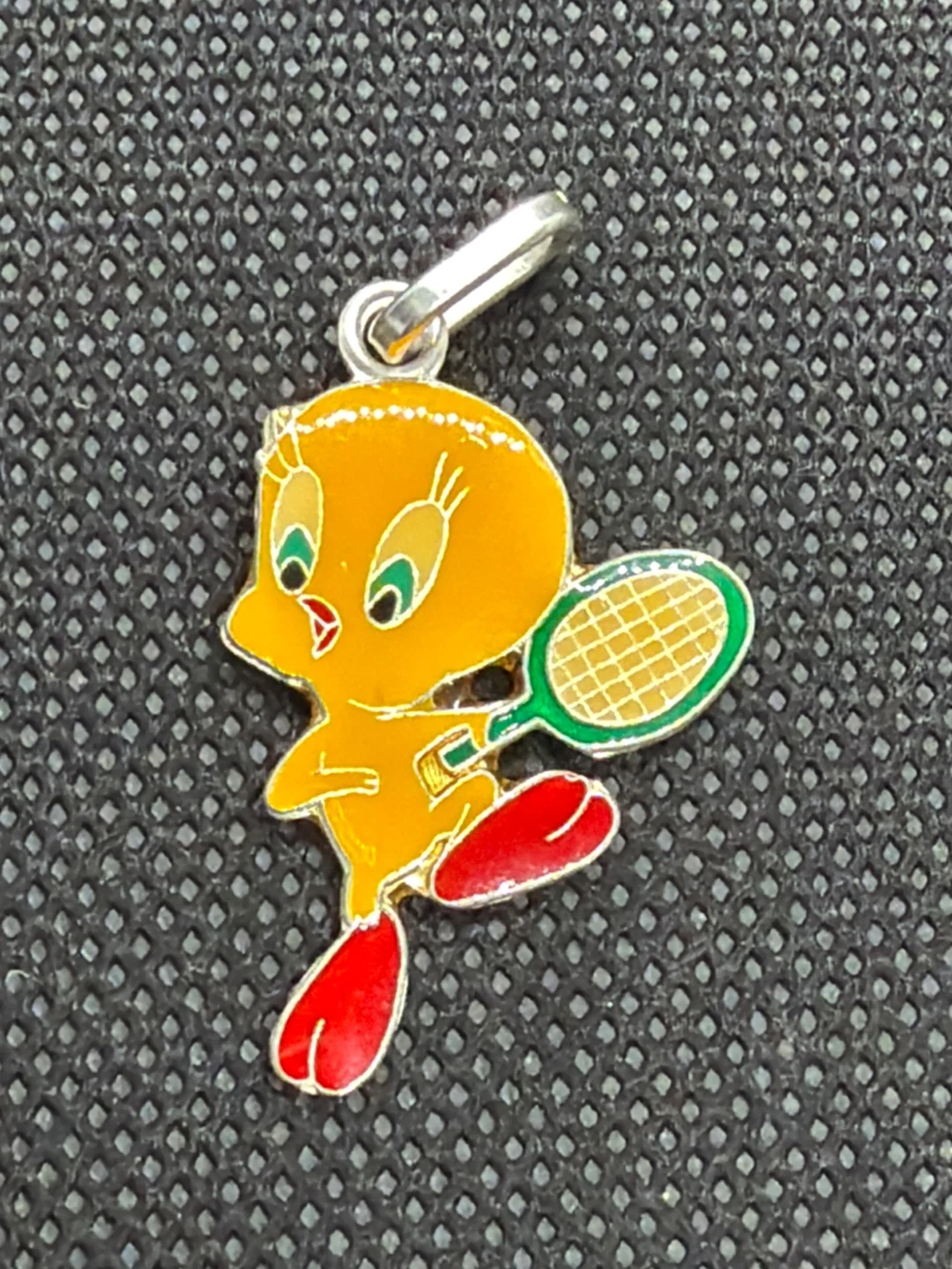 A cute Warner Bros. pendant featuring Tweety Bird in a tennis pose it’s made from 800 Silver from the 70s or 80s super rare piece