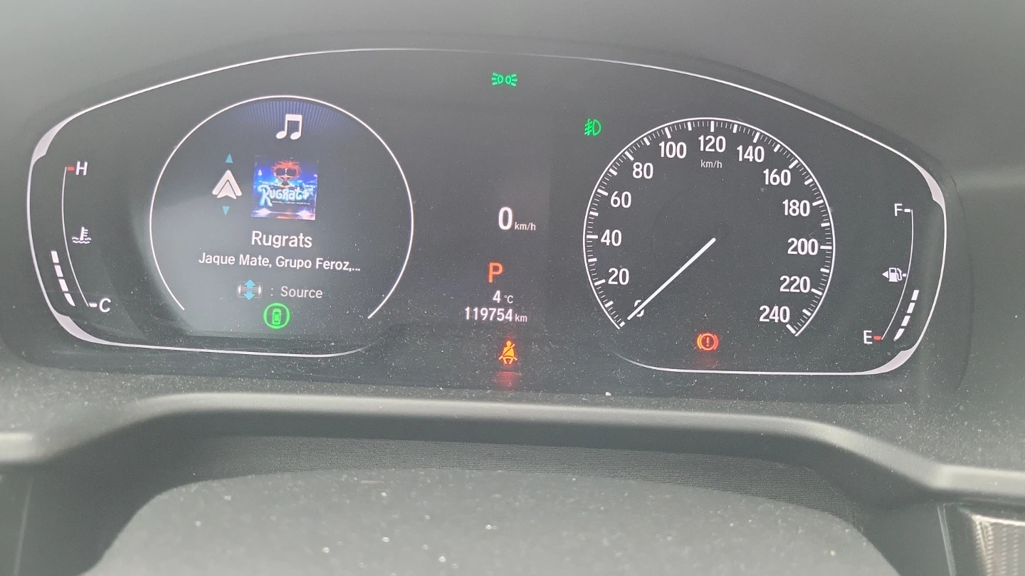 White sedan with red leather interior. Includes infotainment system and has 119,754 km on it. This car is equipped for comfortable daily driving.