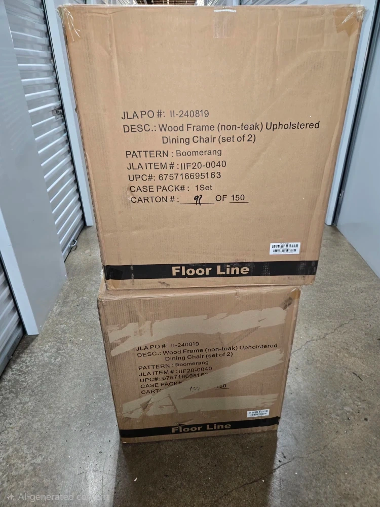 I'm selling a brand new set of two INK+IVY Boomerang dining chairs! They feature a wood frame with non-teak upholstery. The chairs are still in their original packaging and haven't been used. The pattern is Boomerang and the color is a nice blue. Originally bought for $353.08 each box