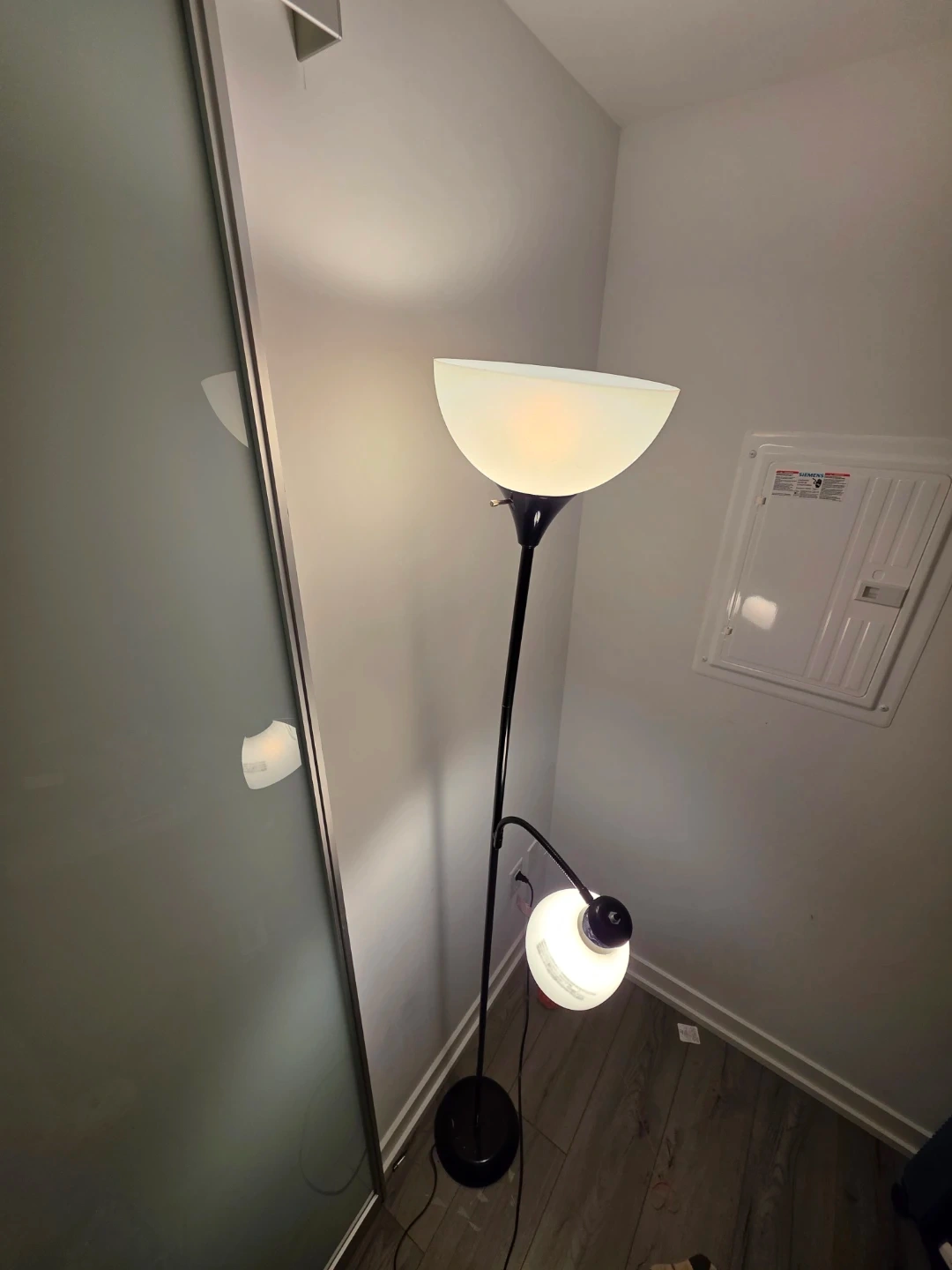 Selling a standing floor lamp that's perfect for adding some extra light to any room! It also has a smaller reading light attached, which is super handy for late-night reading or tasks. It's in great condition and ready to brighten up your space