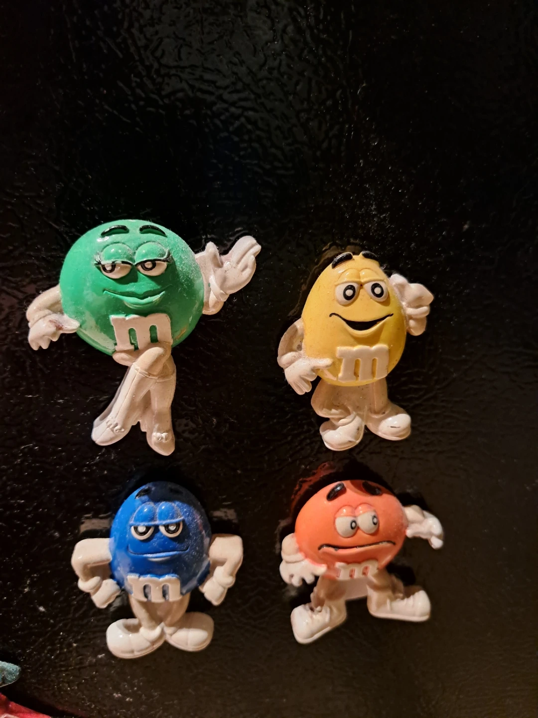 Selling a set of four M&M's character magnets. These cute and colourful magnets are perfect for adding a bit of fun to your fridge or any magnetic surface. Each character has a unique expression and colour, making them a delightful addition to your collection!