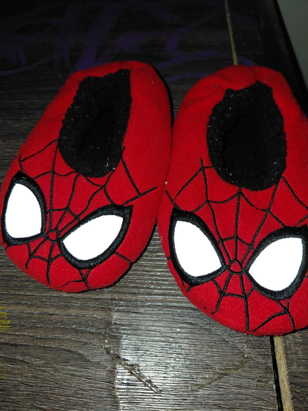 Here are some adorable red Spiderman slippers! They are soft and comfortable, perfect for keeping little feet warm. They feature the classic Spiderman design with the web pattern and big white eyes
