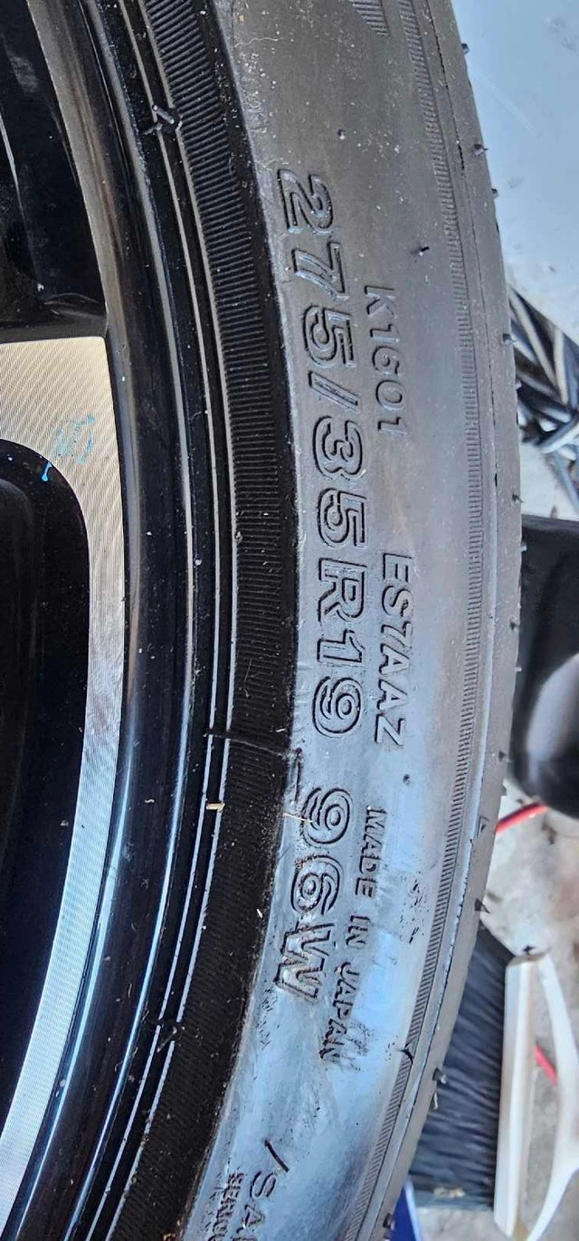 Stock rims and tires from a 2018 Nissan 370Z. Hardly used, like new. Staggered setup: rear tires are 275/35R19 and front tires are 245/40R19. Bridgestone Potenza S007 tires. Can meet in Oshawa or Aurora.