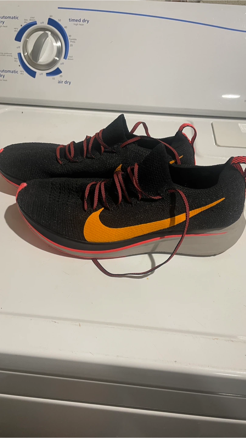 Selling a pair of Nike Zoom Fly running shoes in great condition! These are a US size 10 and feature a stylish black and orange colourway. Perfect for your next run or workout!