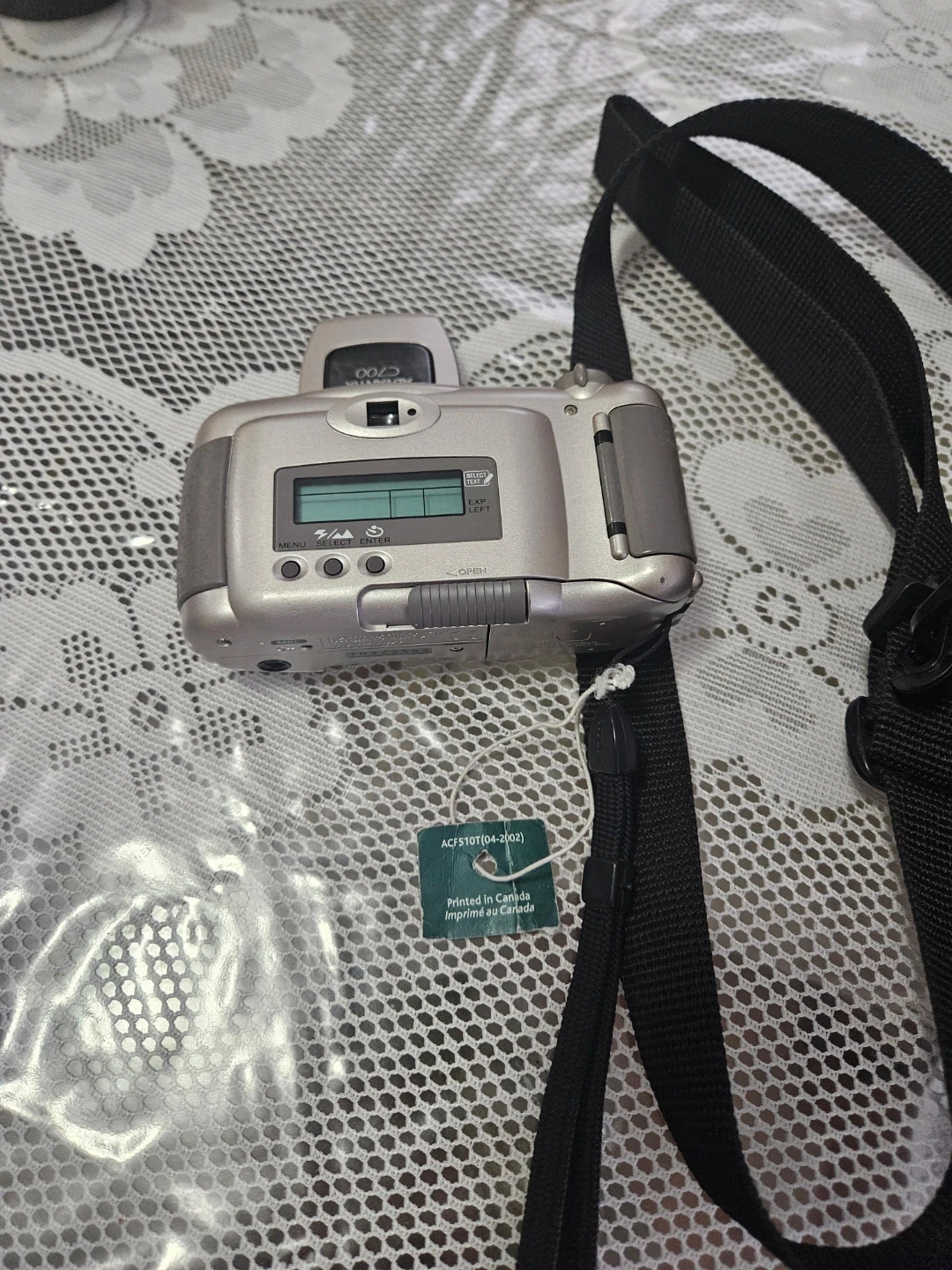 Selling a Kodak ADVANTIX F300 camera with its accompanying bag. The camera appears to be in good condition and comes with a strap. Perfect for someone interested in film photography!