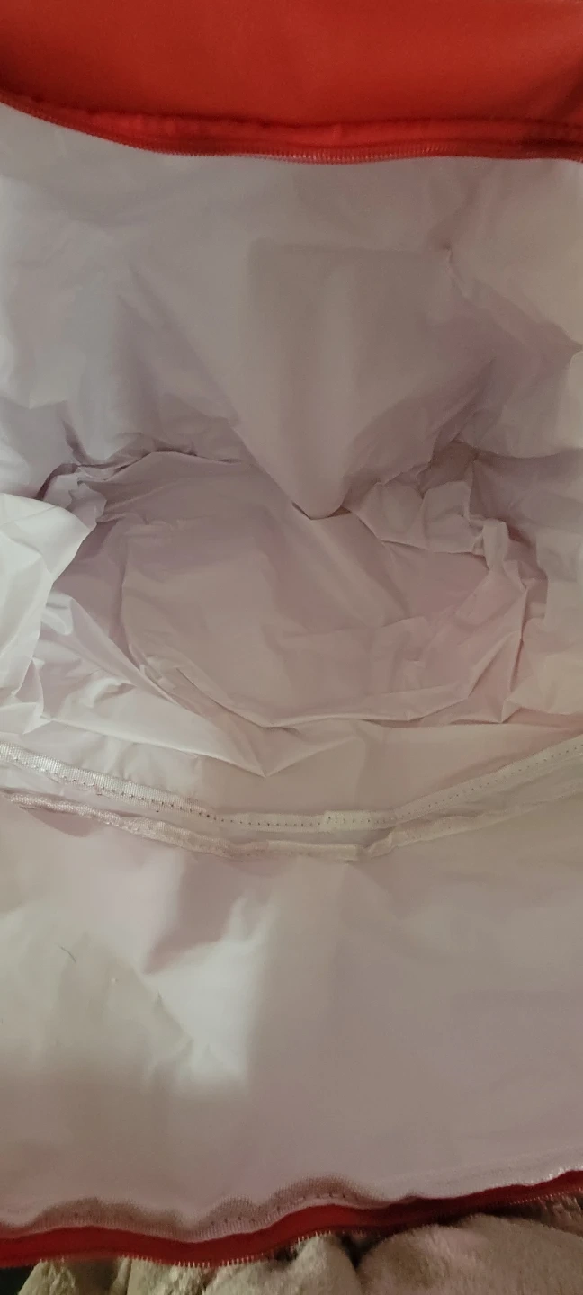 This red Budweiser cooler bag is designed to hold 24 cans of 355ml beer. It features white handles and a zippered closure. It's perfect for picnics or summer gatherings!