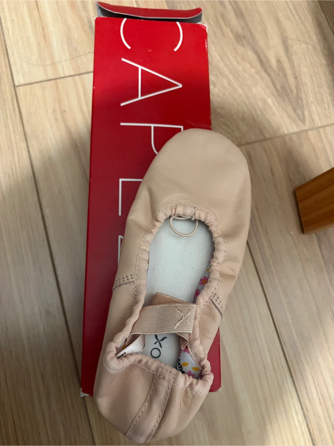 Ballet shoes in pink by Capezio. Leather upper and balance man-made materials. Includes original box. Perfect for beginner dancers!