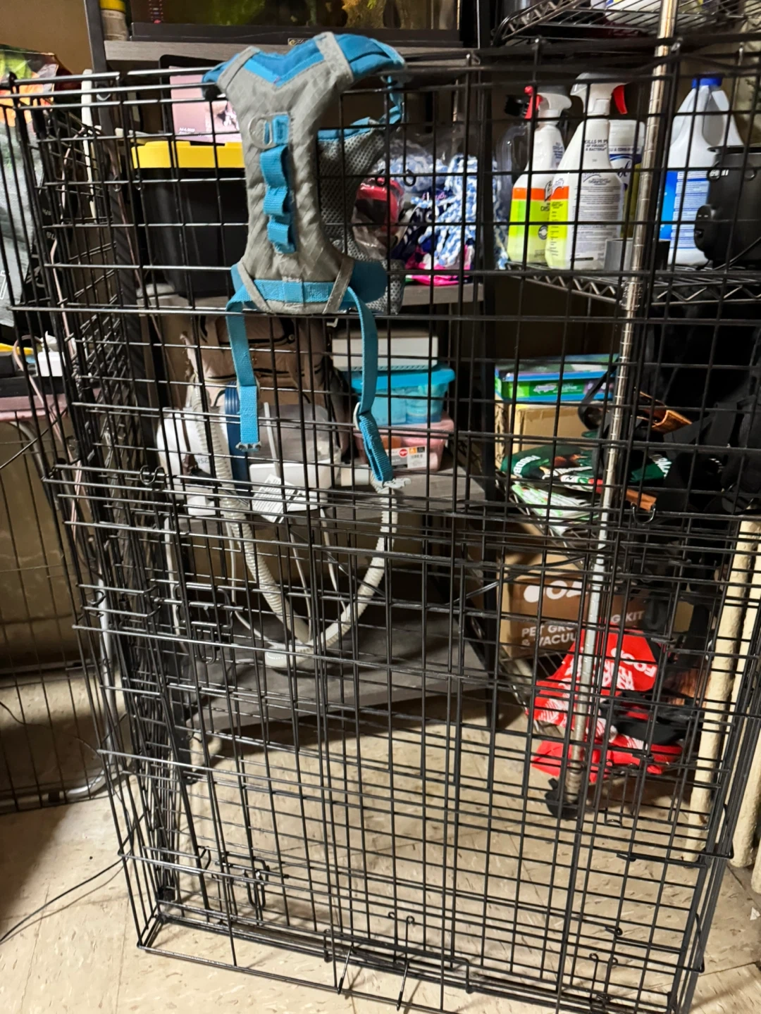Pink Metal dog cage with pink trey