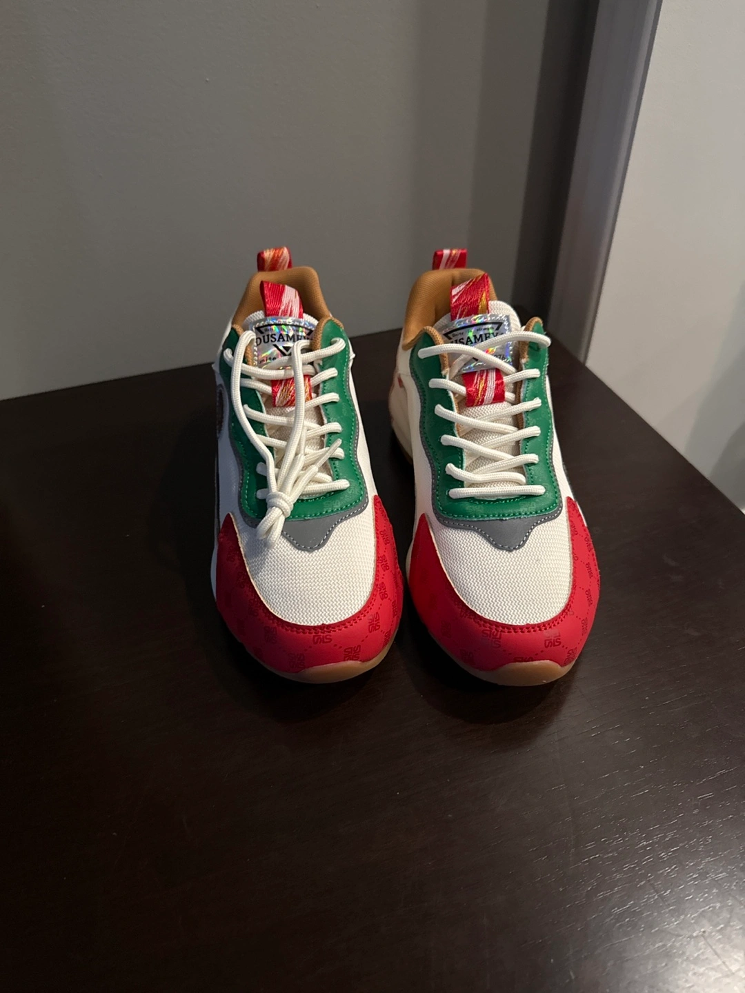 Selling a pair of Dusamelya sneakers! They feature a unique design with red, white, and green accents. Great for adding a pop of colour to your outfit and are super comfy for everyday wear