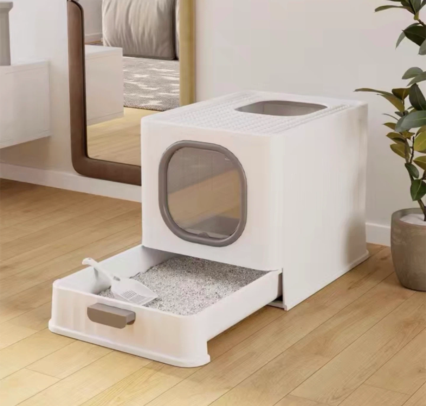 White Cat Litter Box with Drawer and Scoop