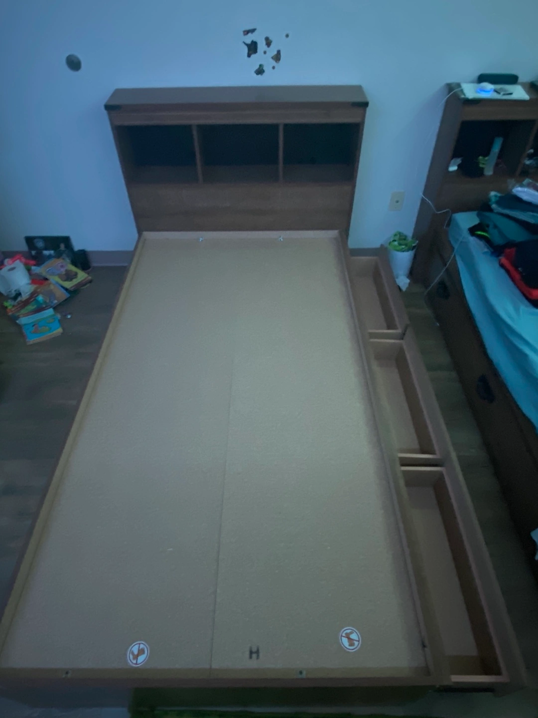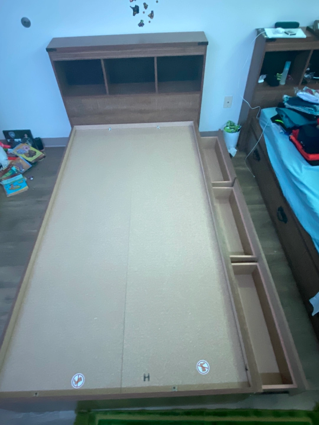 2 beds with both with headboards and 3 big drawers each, total of 2 beds and 2 headboards and 6 drawers. Selling it because im moving. Still practically new got them last year each for $350 comes with the receipt. Open for pick up anytime