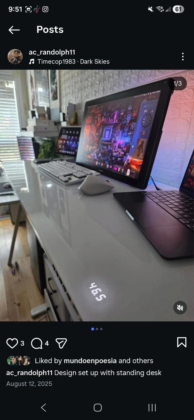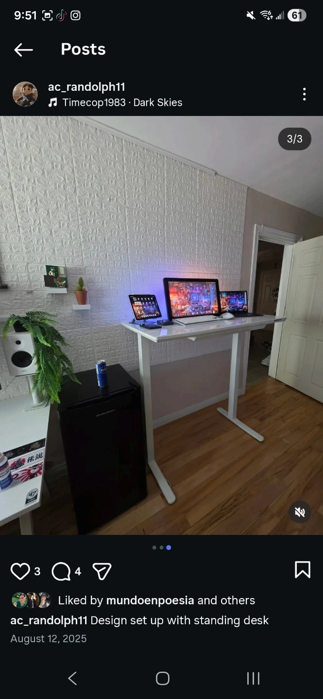 White standing desk with programmable height presets and digital display. It's great for adjusting your workspace height. This desk offers versatility for sitting or standing.