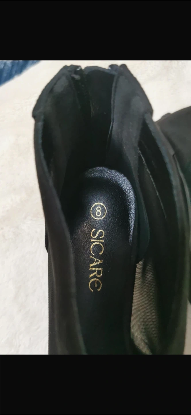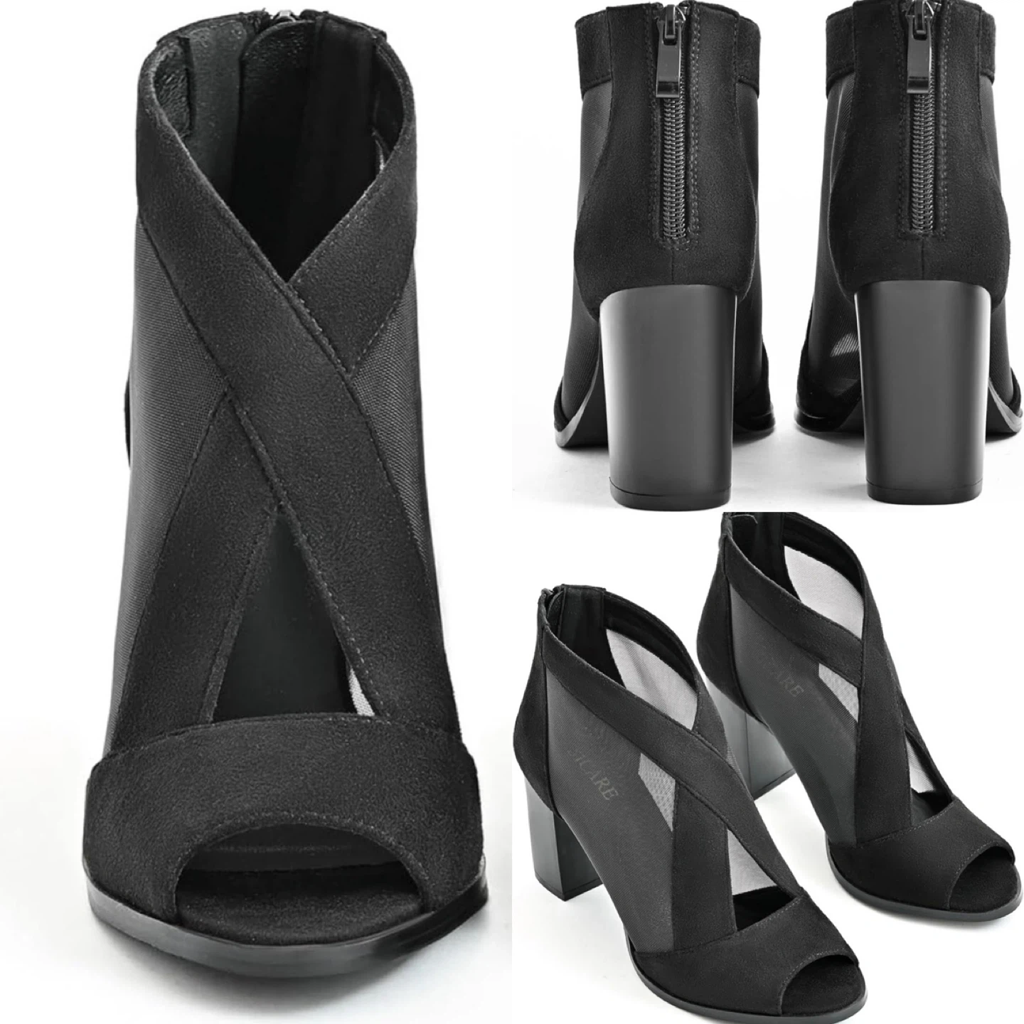 NEW! SICARE Black Mesh Peep-Toe Chunky Heel Booties