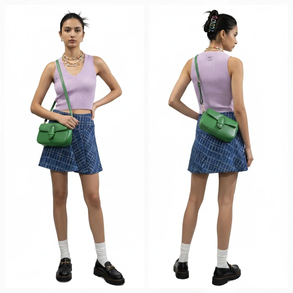 Can be worn high-waisted or on the hips.