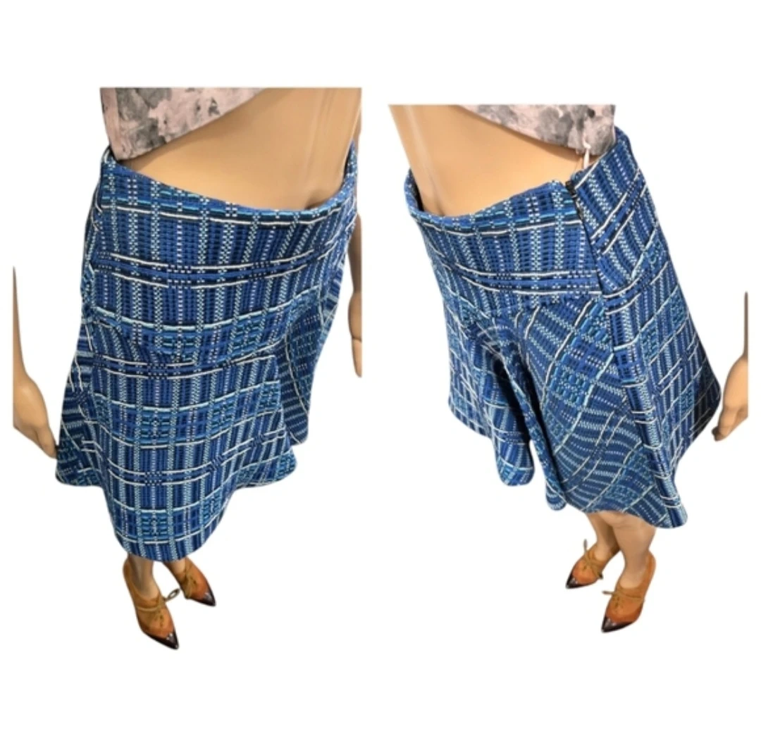 The Paul & Joe Sister textured knit skirt, available in various shades of blue and white, offers a flirty and feminine aesthetic. This is a key piece from the renowned French fashion house.