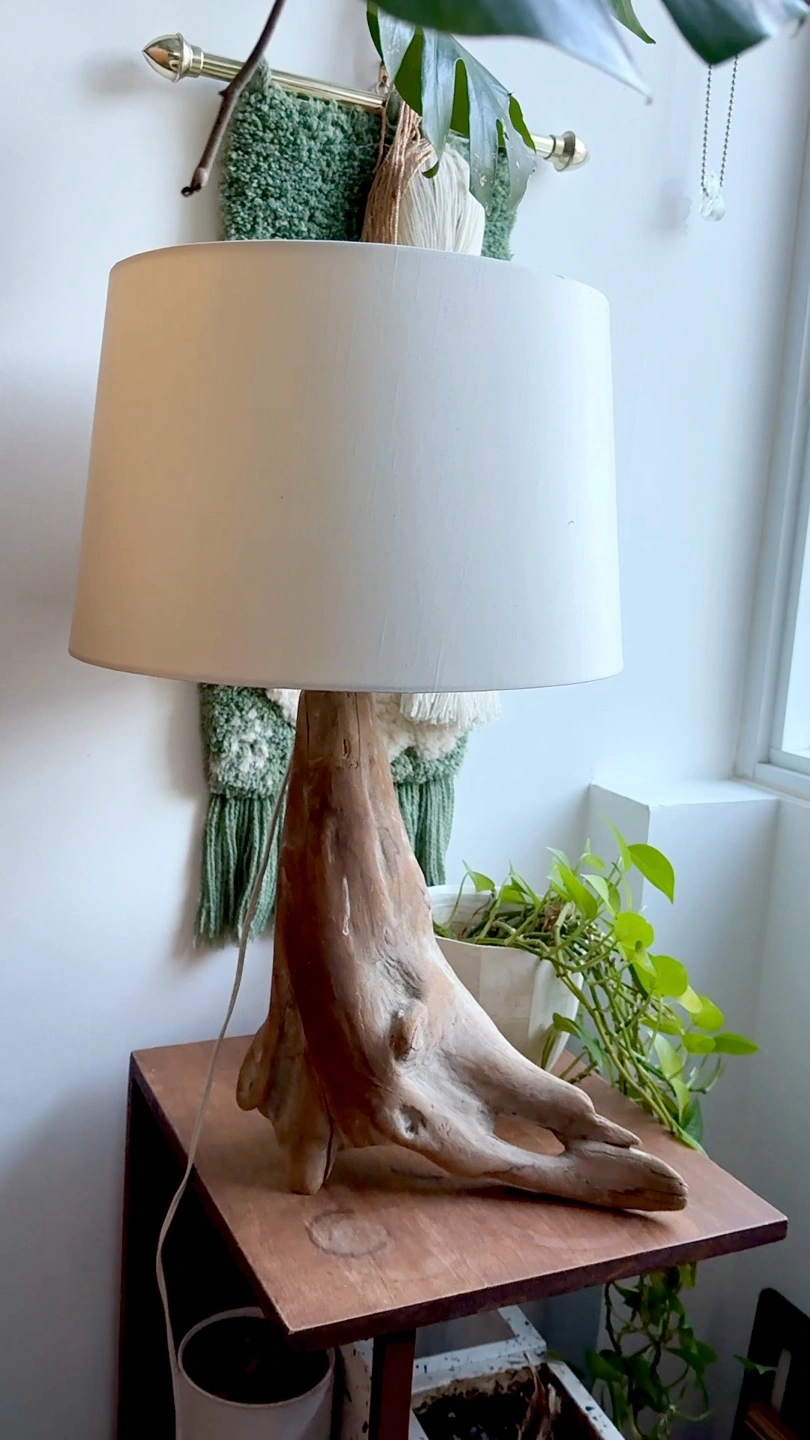 Cottage-Core Hand-Carved Vintage Wood Lamp π€ With Drum Shade