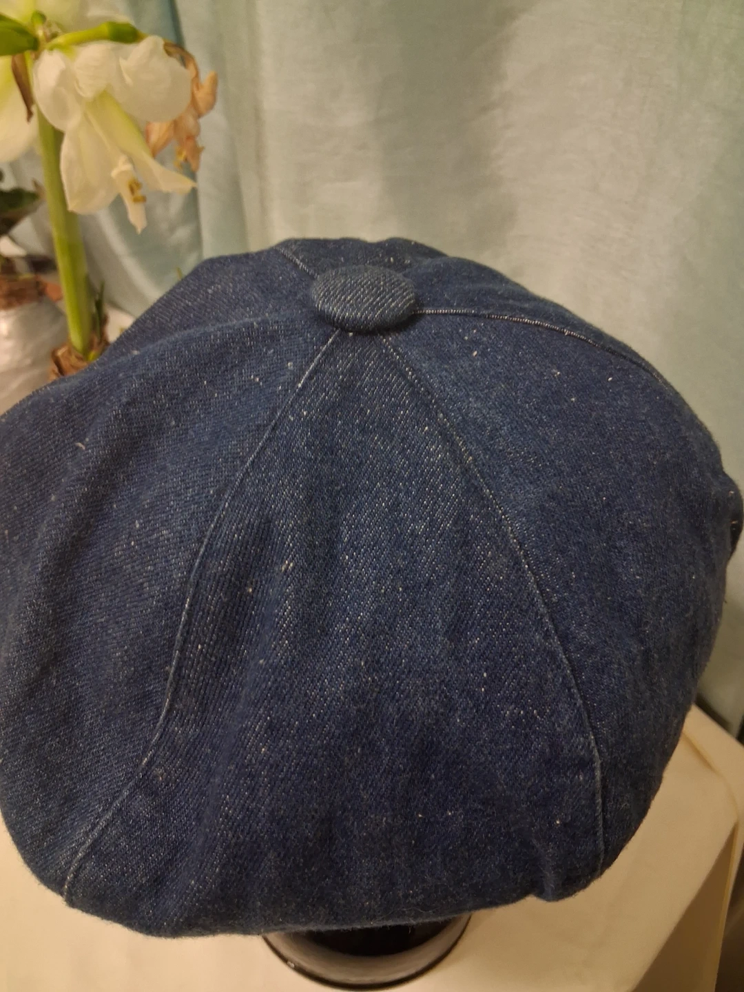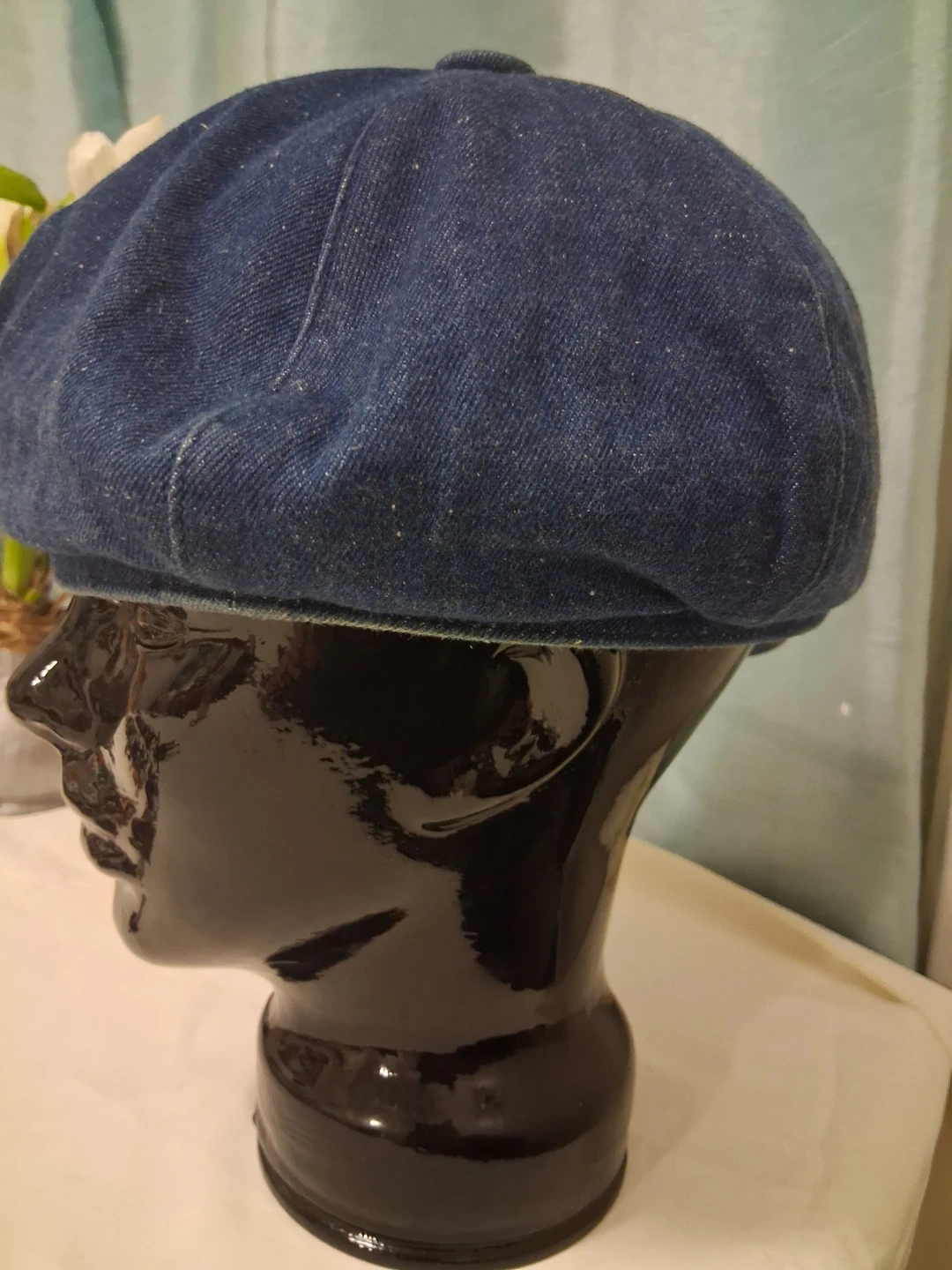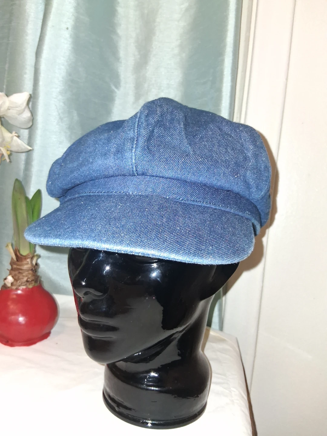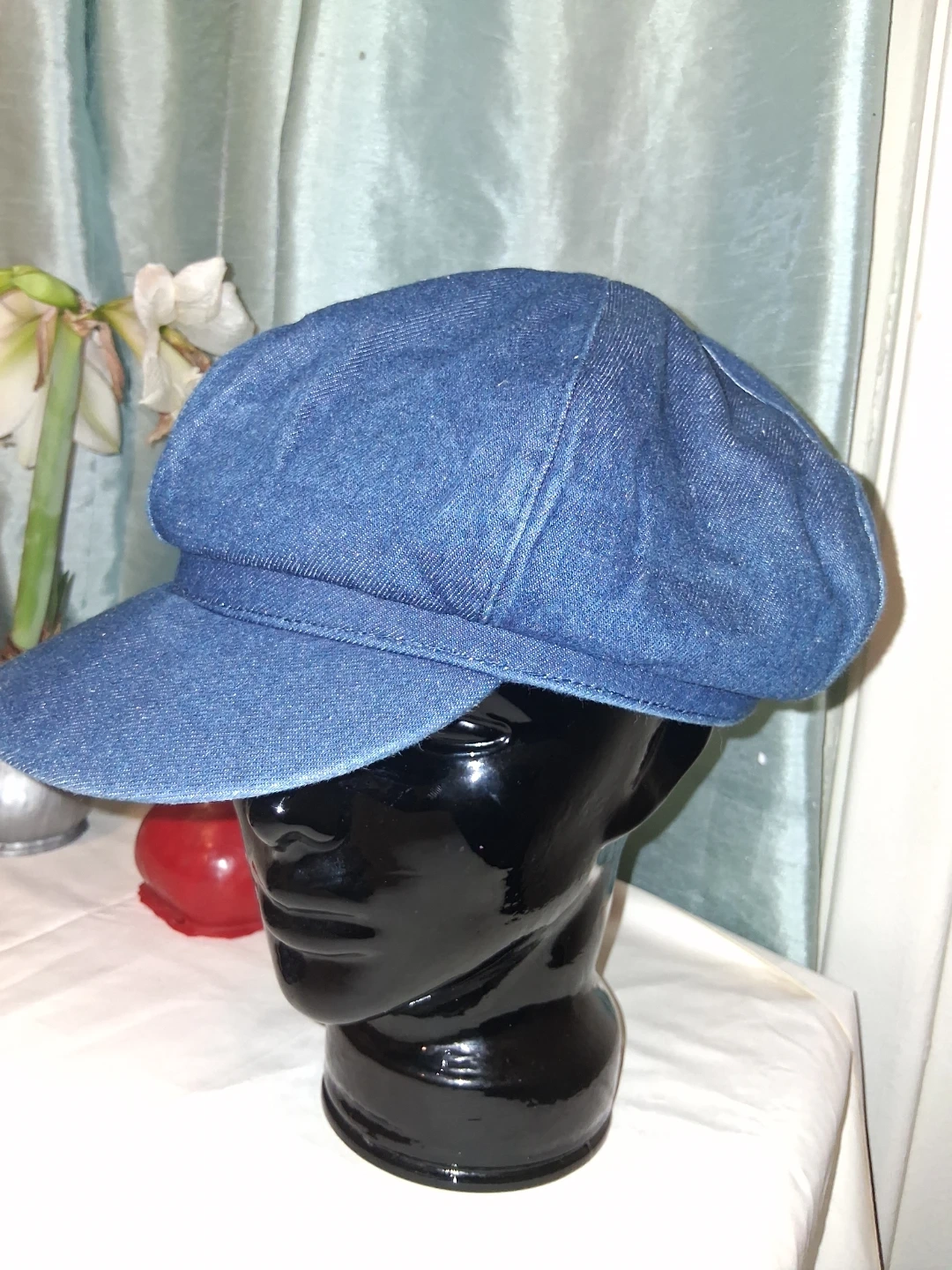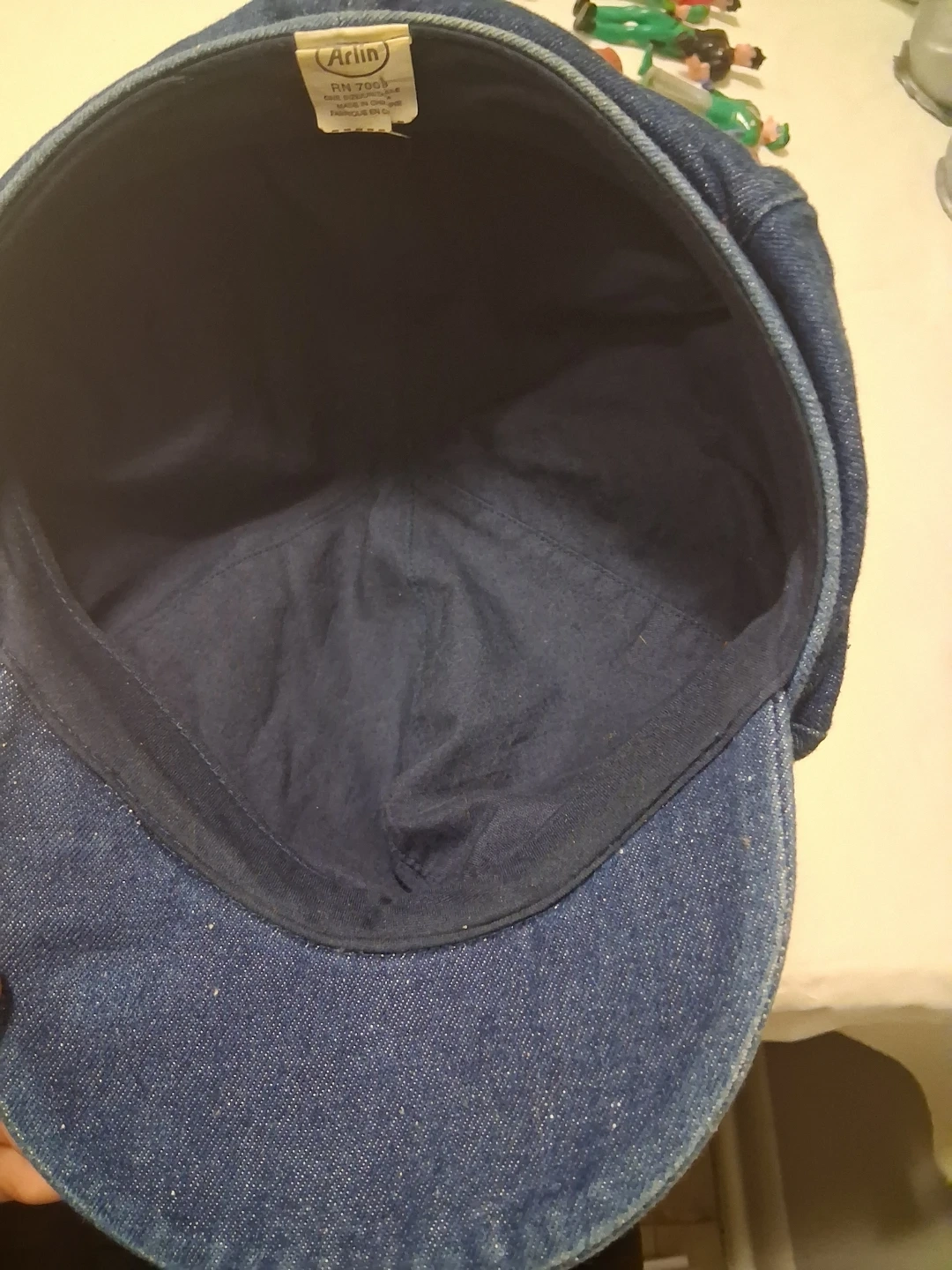 This Arlin baker boy cap is made from a denim-like material. It's a one-size-fits-most style. This cap is useful for adding a stylish touch to an outfit. It's great for casual wear!