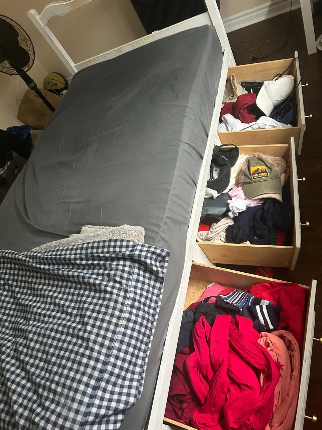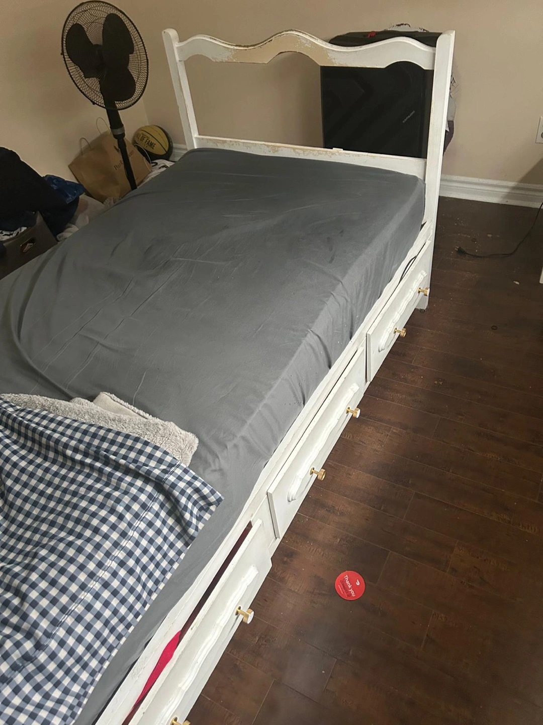 MUST GO White Twin-Size Bed Frame with Drawers and mattress